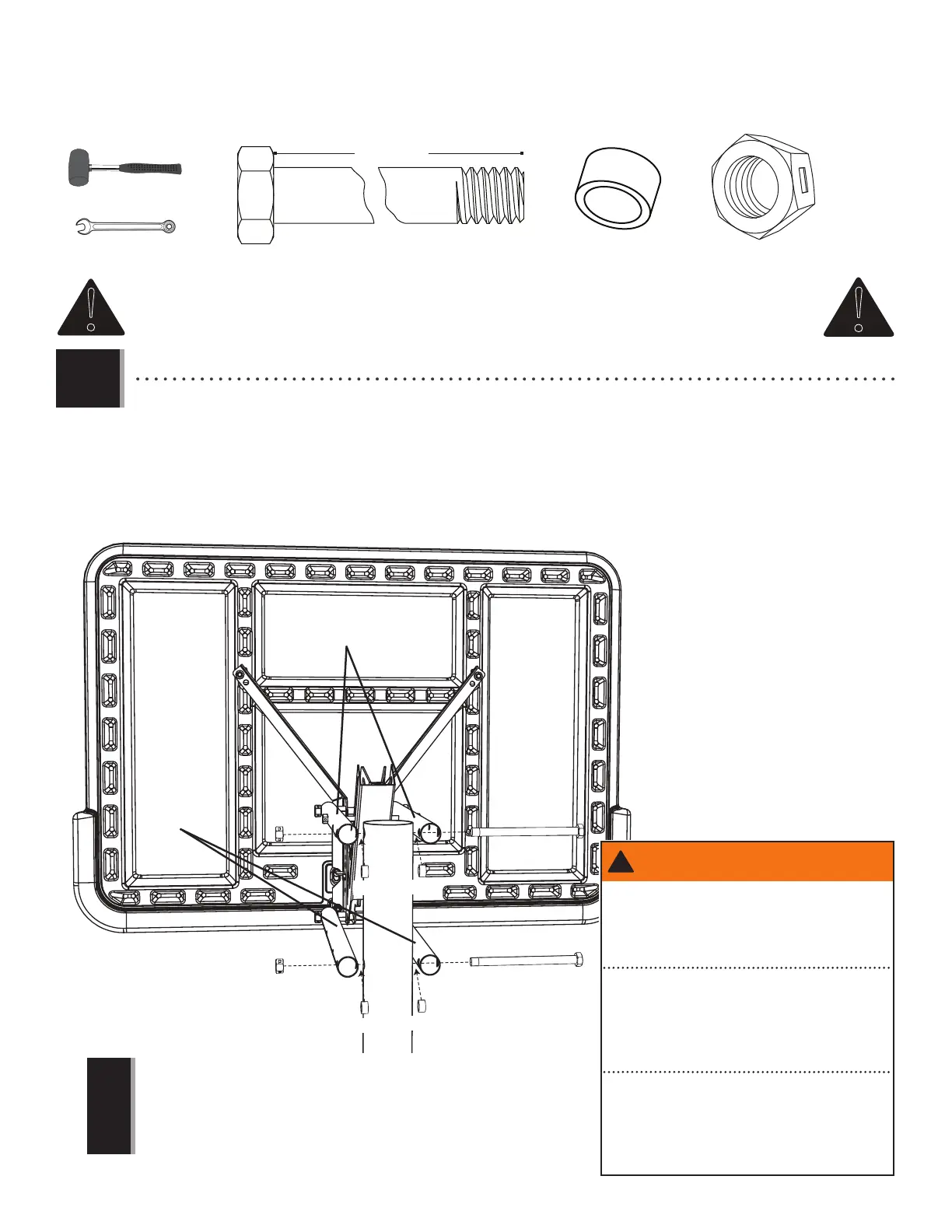 CAUTION: HAVE ONE ADULT HOLD THE BACKBOARD IN PLACE UNTIL ASSEMBLY HAS BEEN COMPLETED!