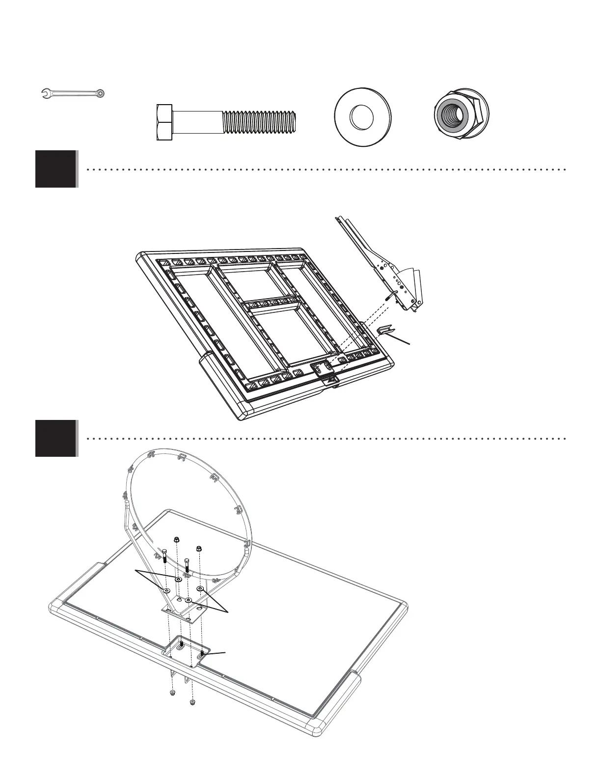 • Connect the rim (ALX) to the backboard (AJI) with the hardware indicated.