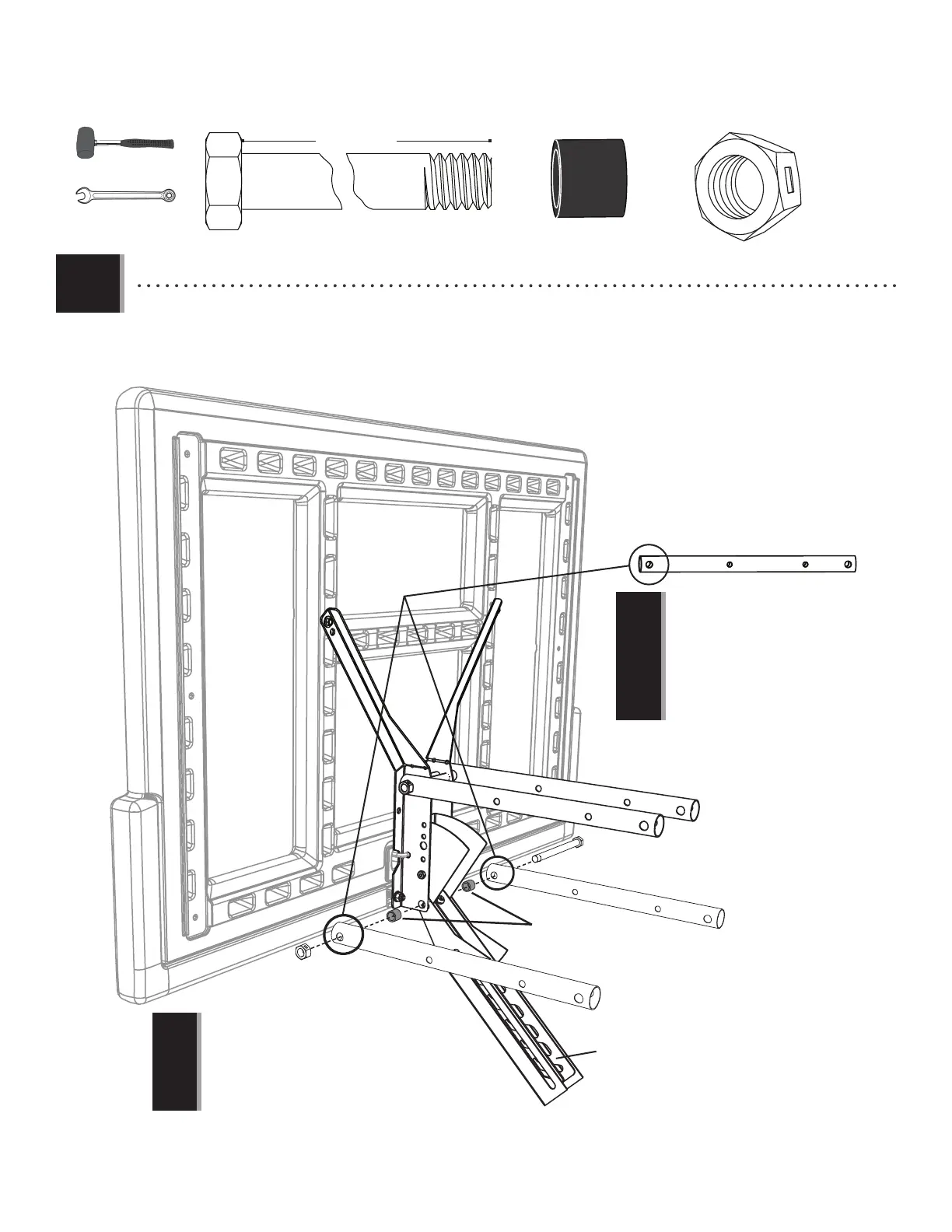 • Secure the dunk latch (BDL), outer guard (BDN), and the other two extension arms (AKC) to the backboard brackets.