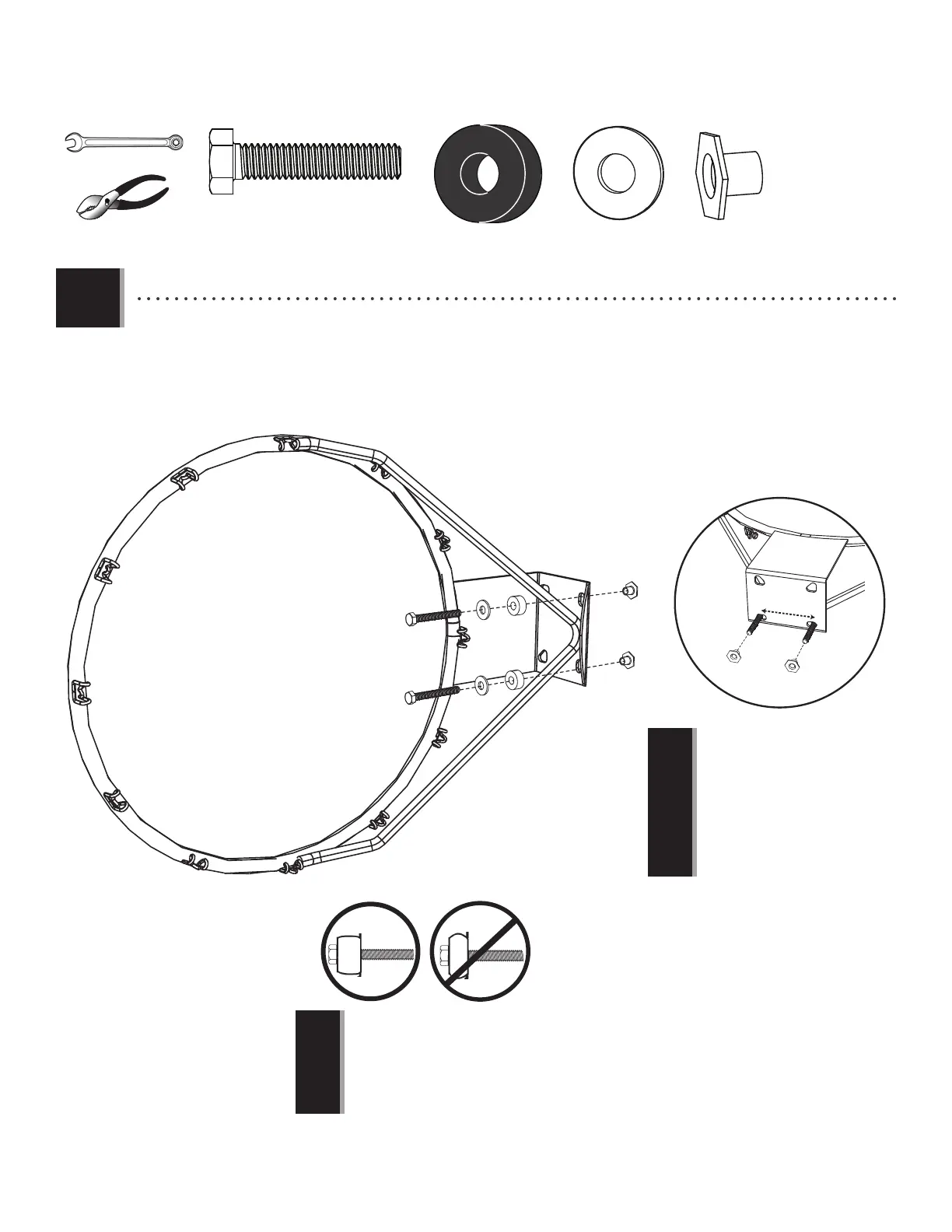 • Do not overtighten the hardware so much that
