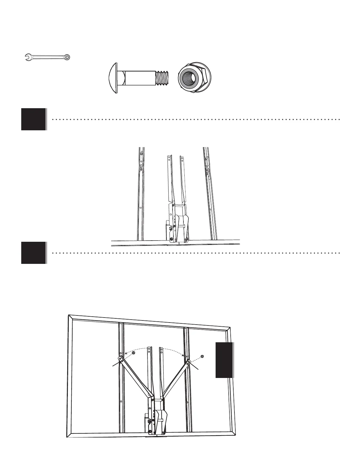• Bend the backboard brackets outward by hand and gently lift them over the carriage bolts (ABC). Then securely