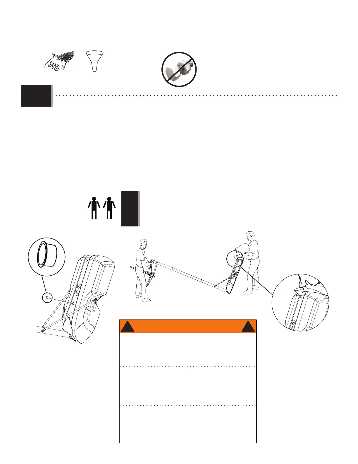 de deux personnes adultes, posez la base sur une surface plate et fi nissez de remplir la base avec du sable.