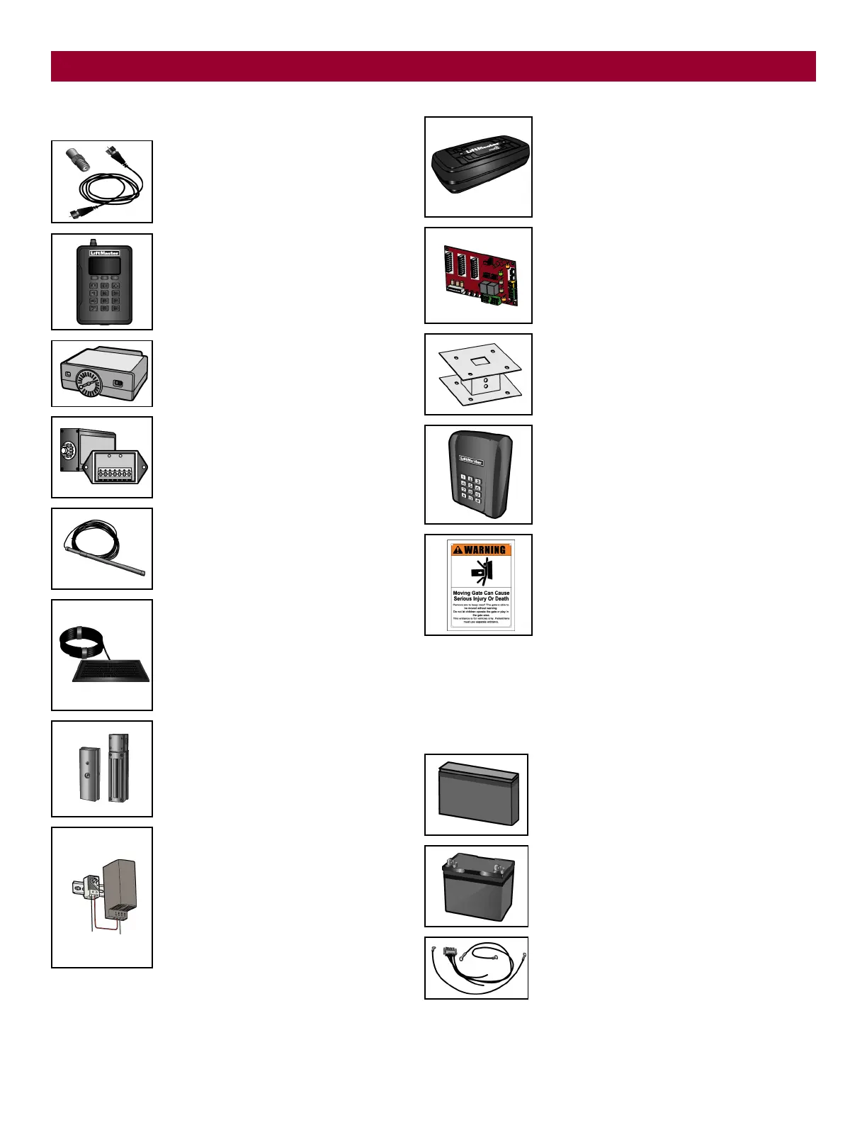 Two identical 12 Vdc batteries are required for each gate operator. Do not