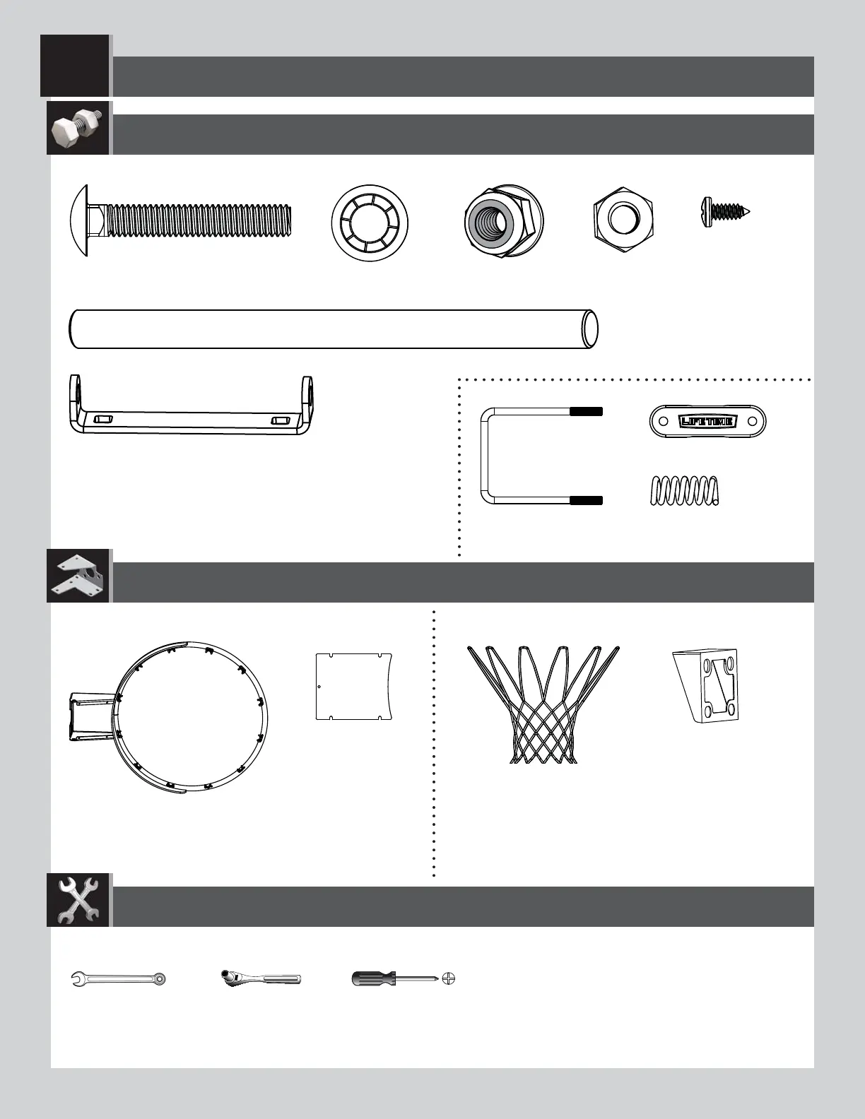 Lifetime SLAM-IT PRO 5000 - Product Assembly; Hardware and Parts Identification; Tools Required for Assembly