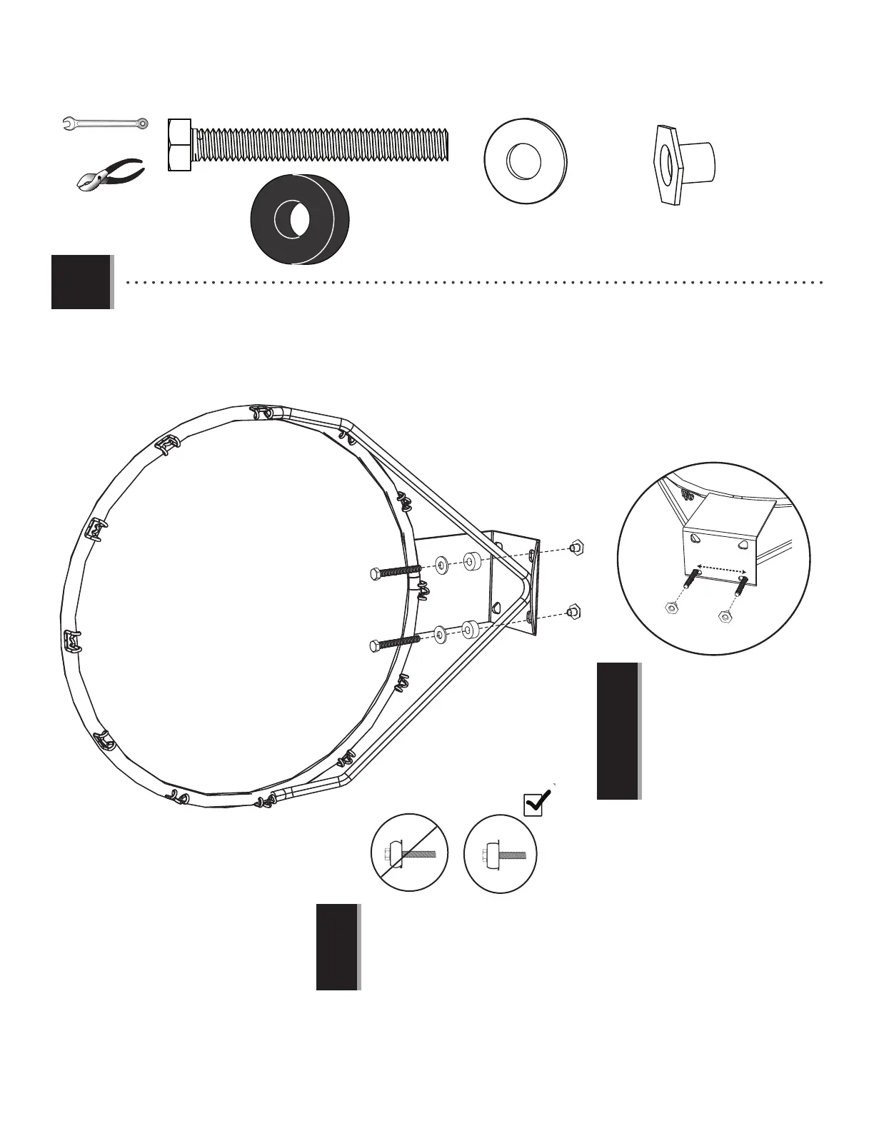 • Insert two Tap Bolts (ABG) with the Washers (ABD) and the Rubber Washers (ABF) through the bottom holes in the back of the Rim