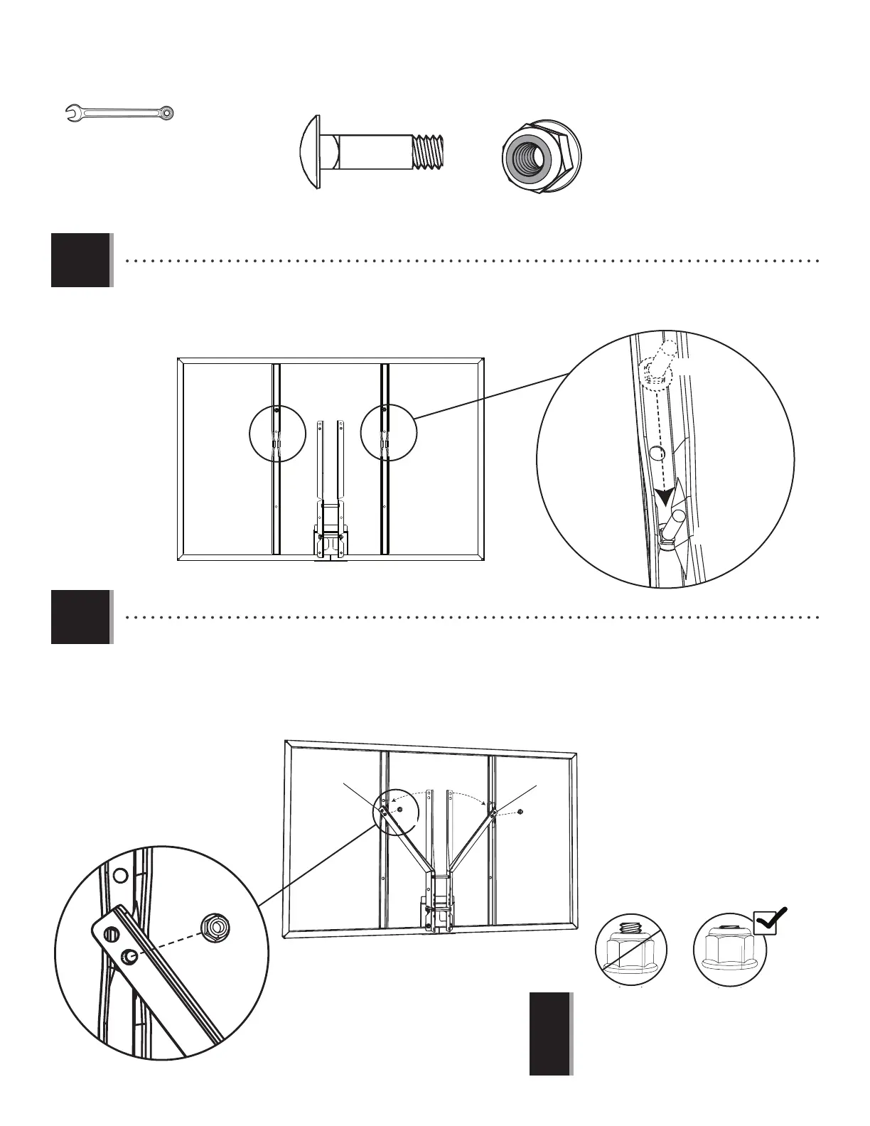 • Bend the Backboard Brackets by hand, and gently lift them over the Carriage Bolts (ABC). Securely fasten the Backboard