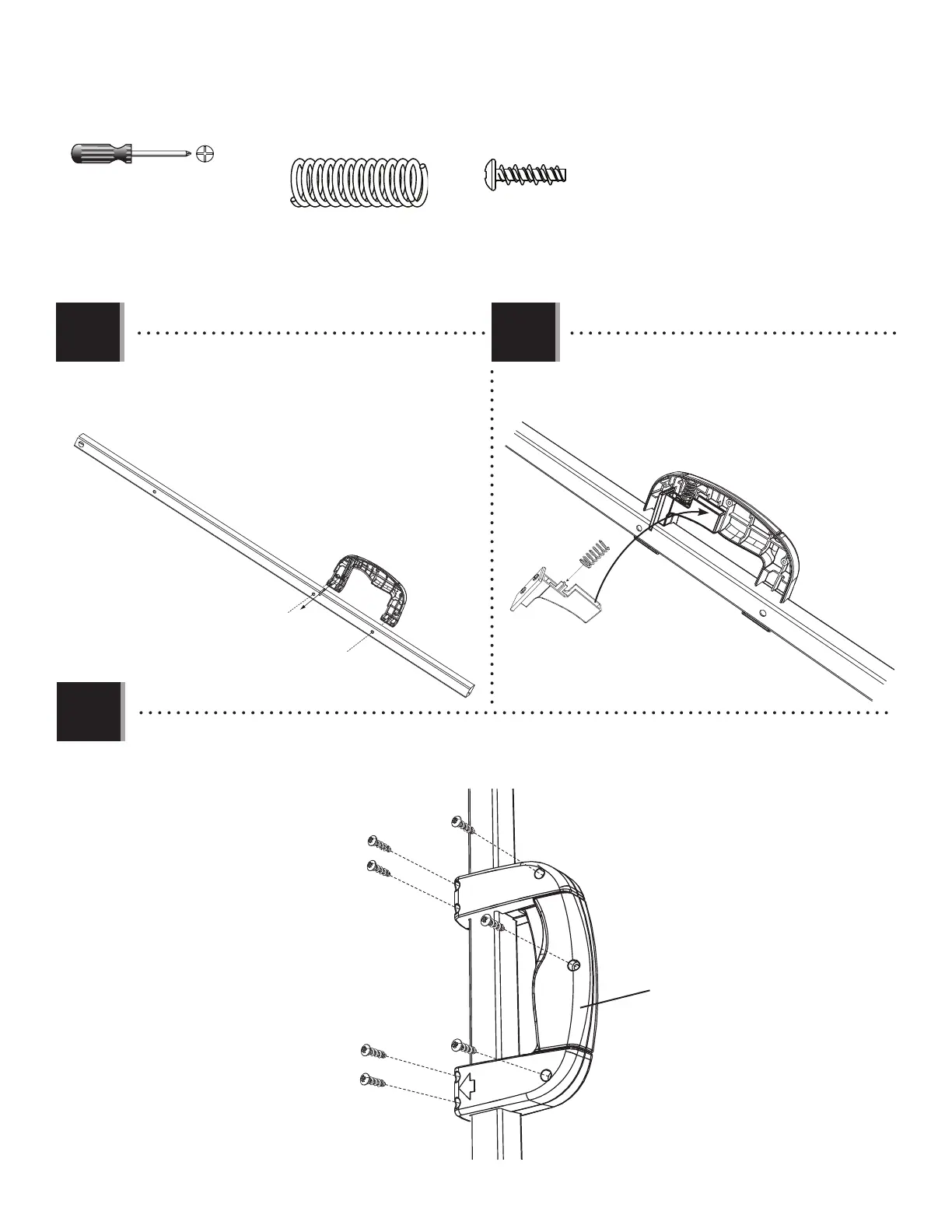 • Attach the Left Handle (AKL) to the Right Handle with the hardware shown.