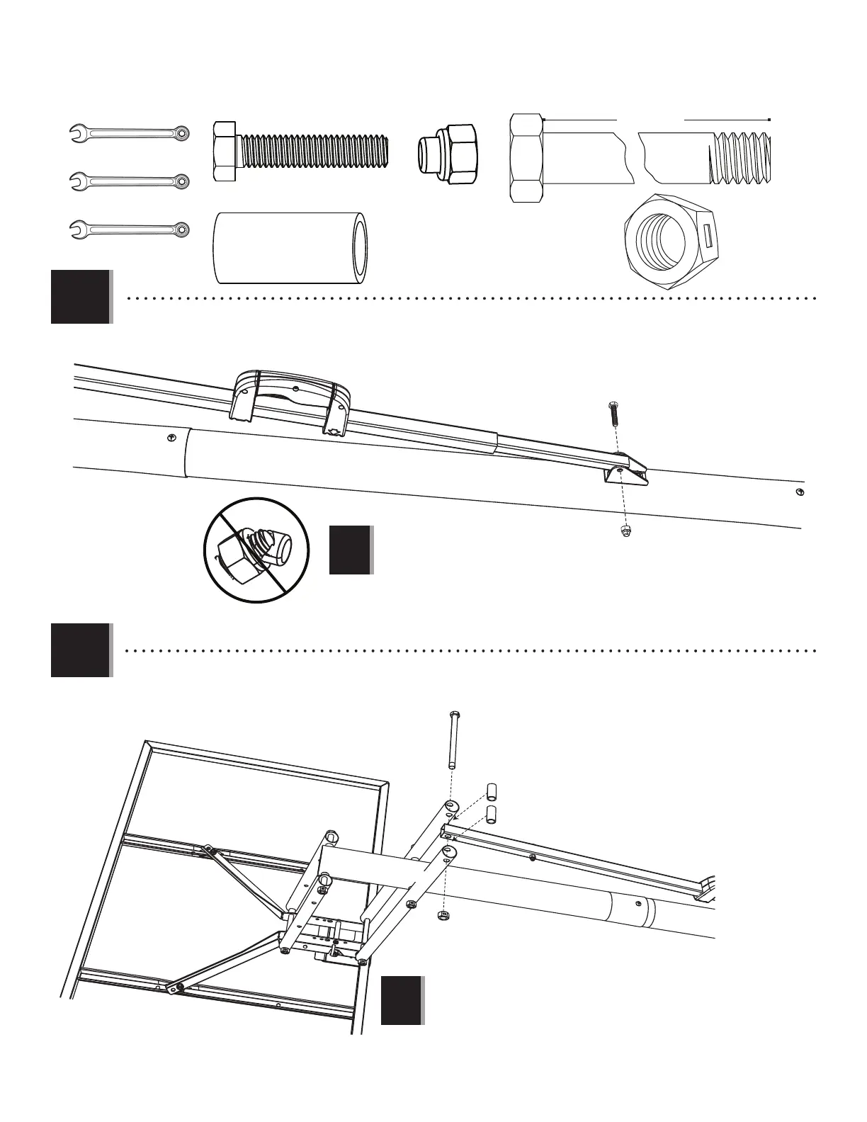• Secure the Outer Tube (ALB) to the Long Extension Arms (AKB) with the hardware shown.