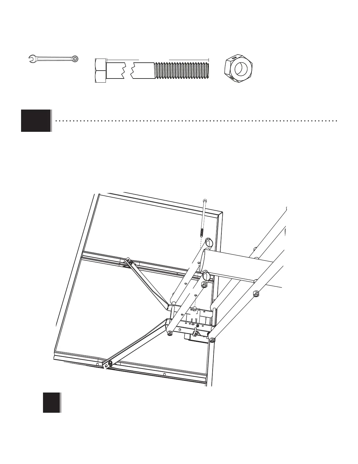 • Insert the Hex Bolt (ABA) through the holes in the Short Extension Arms (AKC) that are closest to the Pole. Secure the Hex