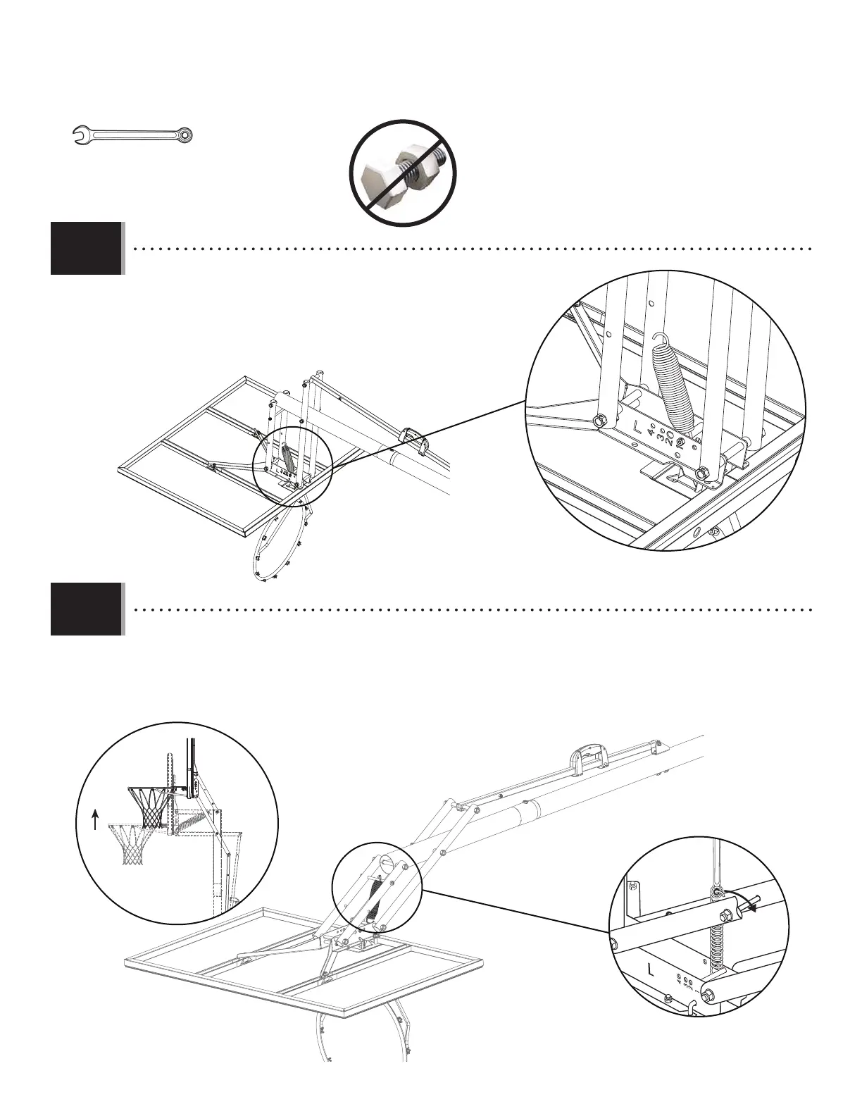 • Raise the Backboard to the Highest position. Using the closed end of a wrench, stretch the Counterbalance Spring (AJY)