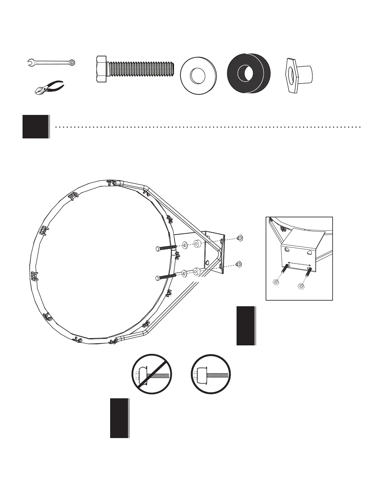 • Do not overtighten the hardware so much that the Rubber