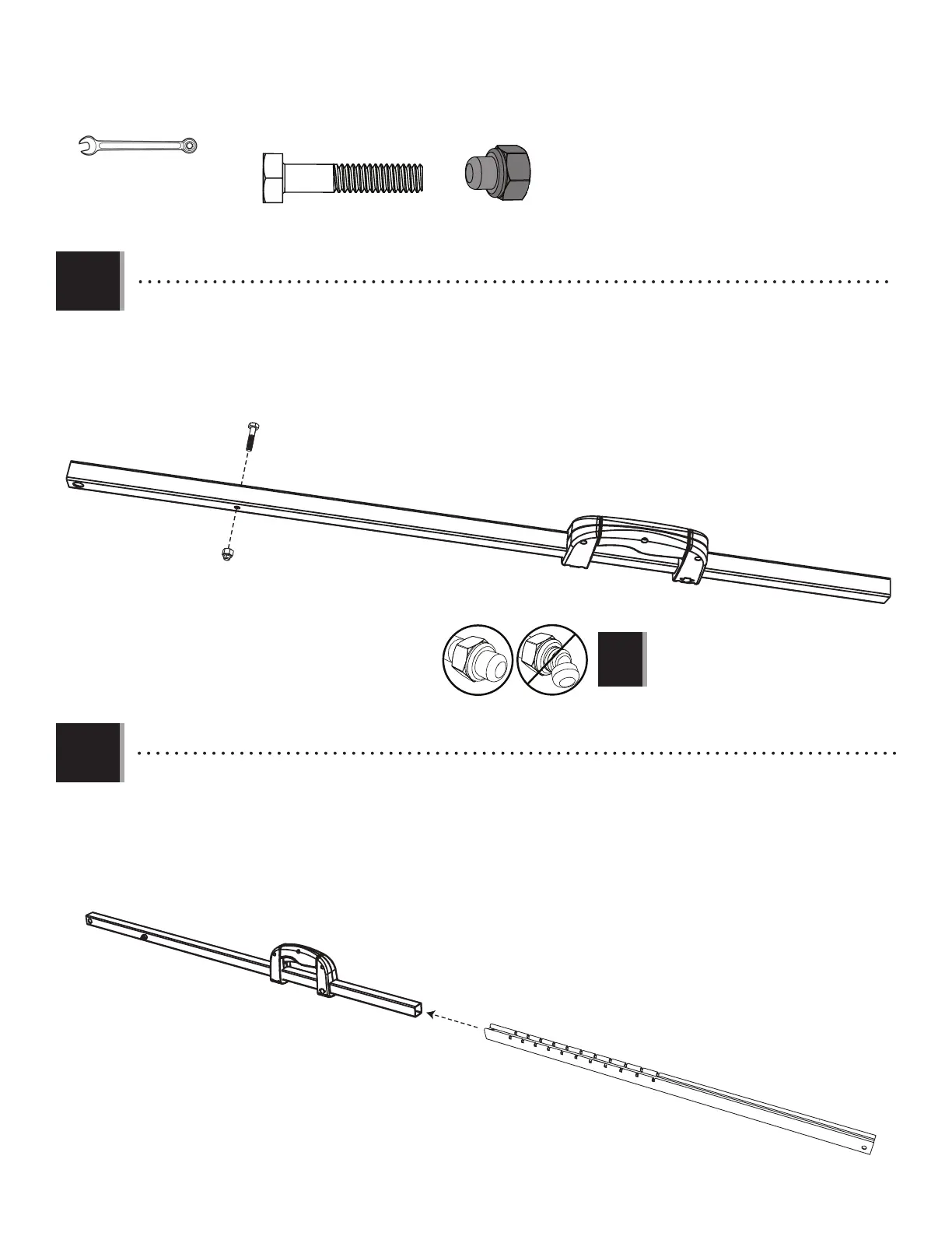 • Insert the Hex Bolt (AAL) through the holes indicated on the Outer Tube (ALB). Secure the Hex Bolt to the Outer Tube with