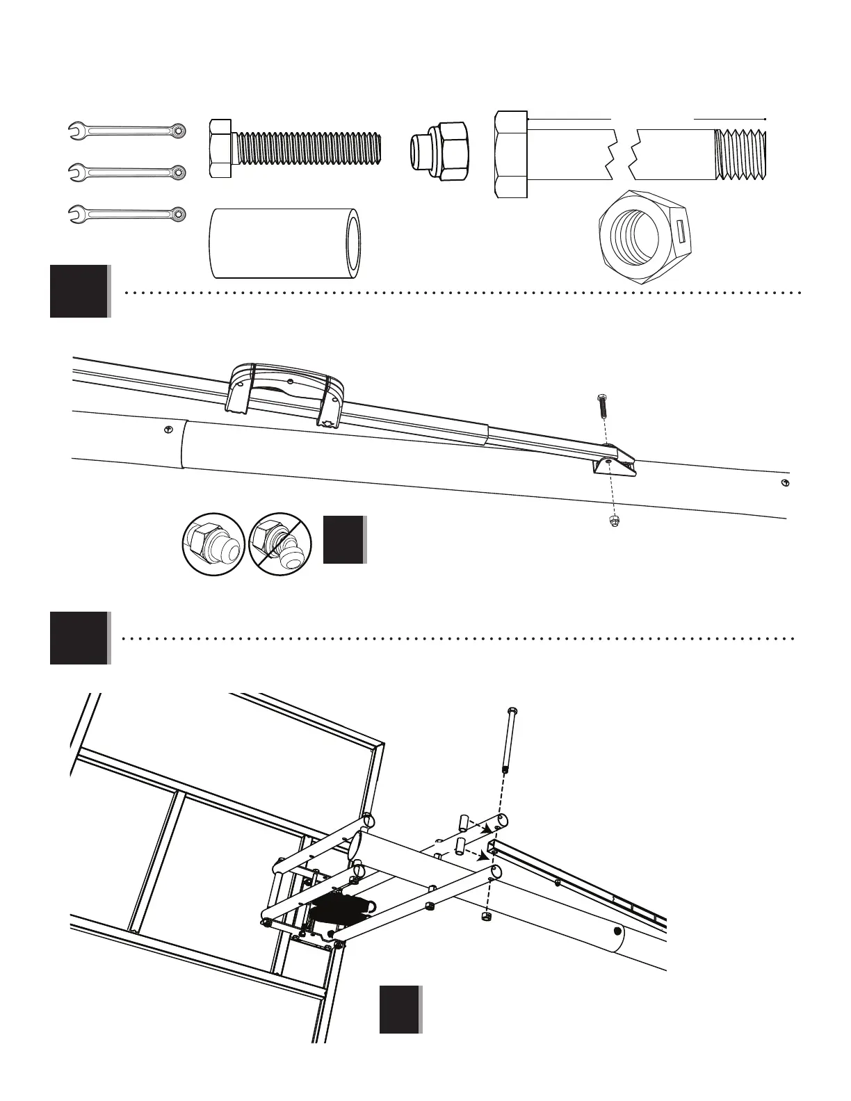 • Secure the Outer Tube (ALB) to the Long Extension Arms (AKB) with the hardware shown.