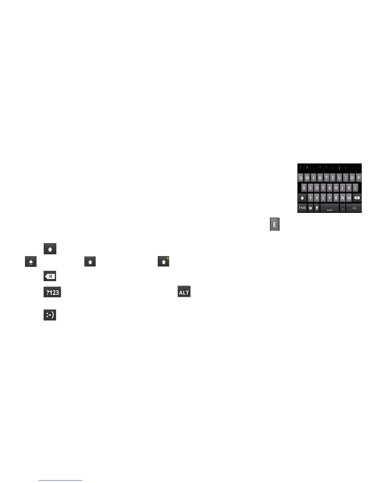 • Tap the alphabetic keys to enter letters. Tap and hold some specific keys to enter