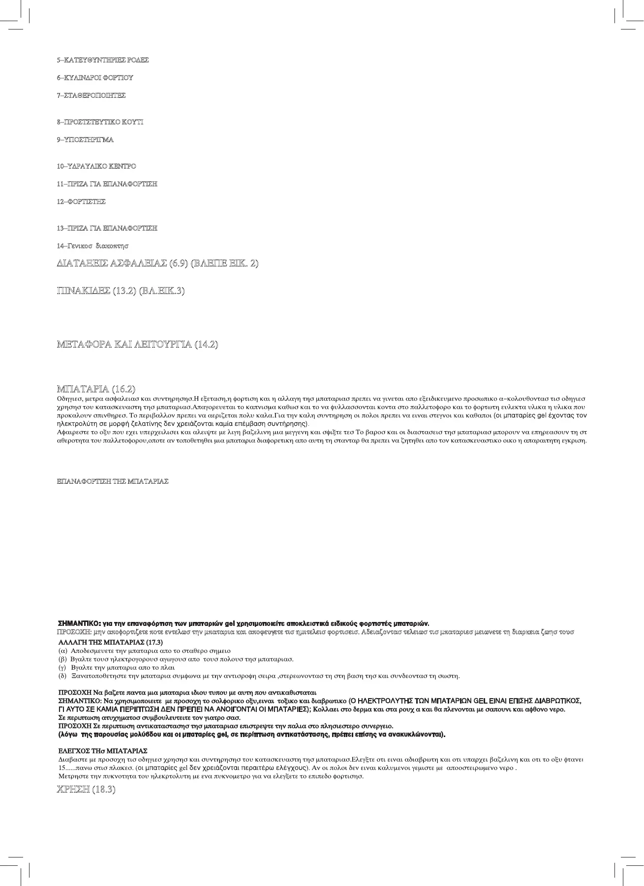 δειχνουν τισ λειτουργιεσ χειρισμου Δ) Πινακιδεσ που δειχνουν τα σημεια δεσιματοσ Ε) Πινακιδεσ κινδυνου συνθλιψεωσ ποδιων Φ) Πινακιδα μπαταρια