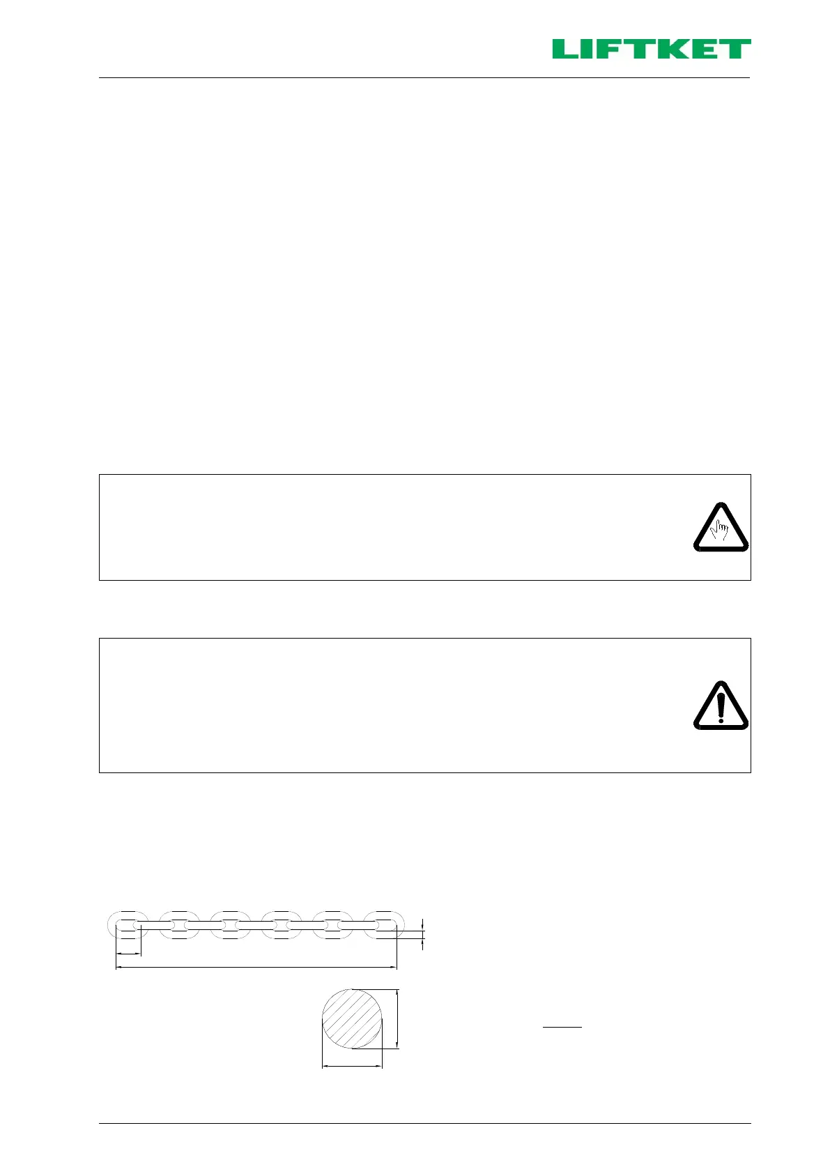 • If a link has elongated by 5 %, or if the chain, measured on 11 chain links, has elongated by 2%;