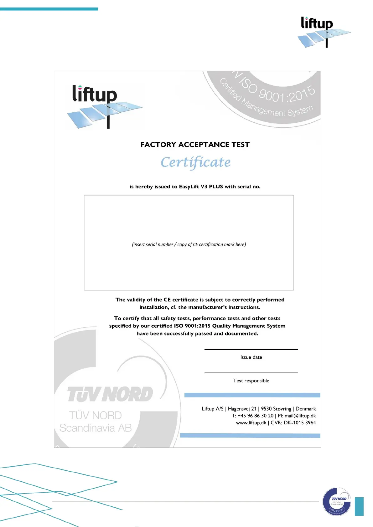 Liftup A/S Hagensvej 21 | DK-9530 Støvring | Danmark | T: +45 96 86 30 20 | M: support@liftup.dk | www.liftup.dk | CVR: DK-1015 3964