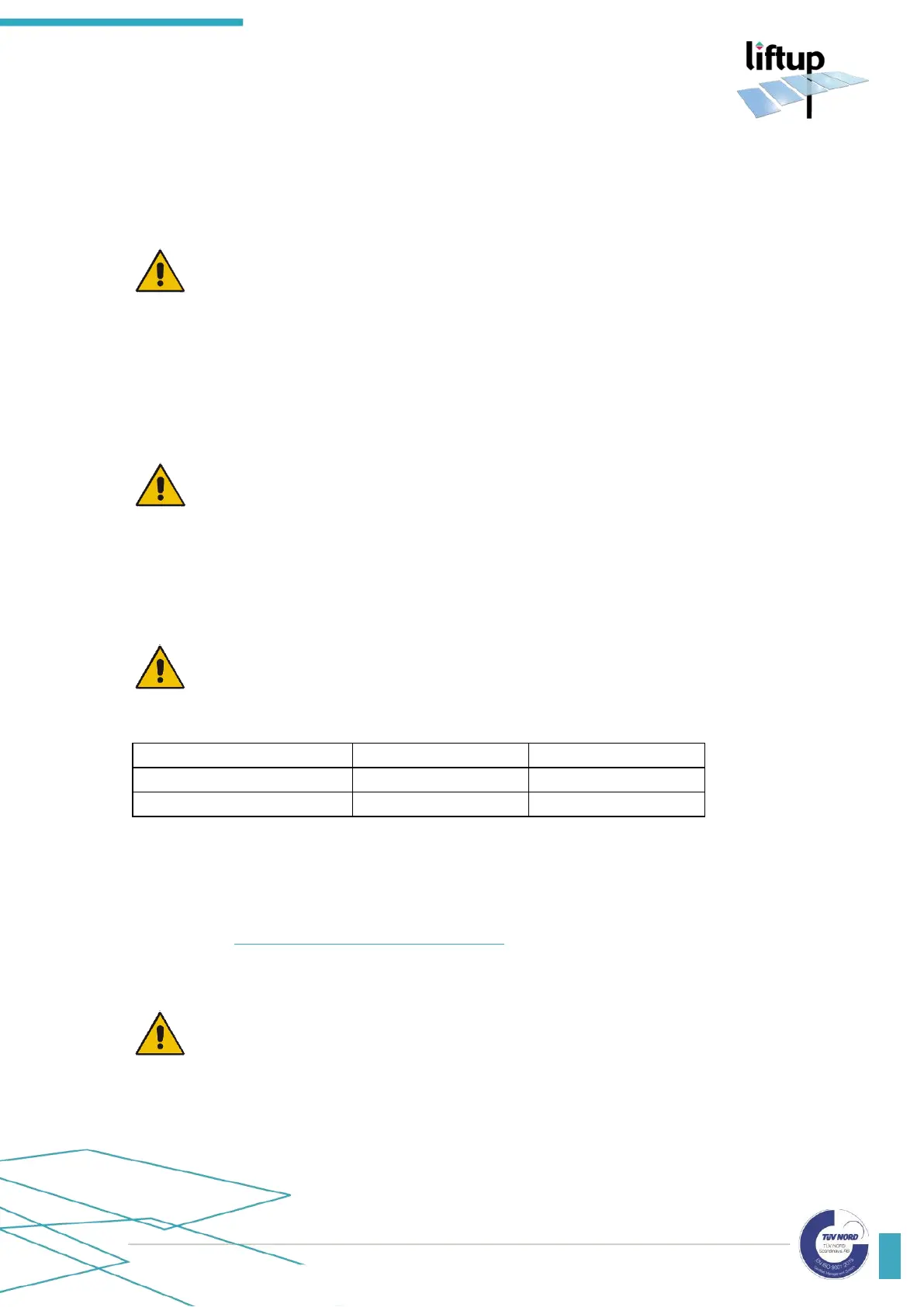 Liftup A/S Hagensvej 21 | DK-9530 Støvring | Danmark | T: +45 96 86 30 20 | M: support@liftup.dk | www.liftup.dk | CVR: DK-1015 3964
