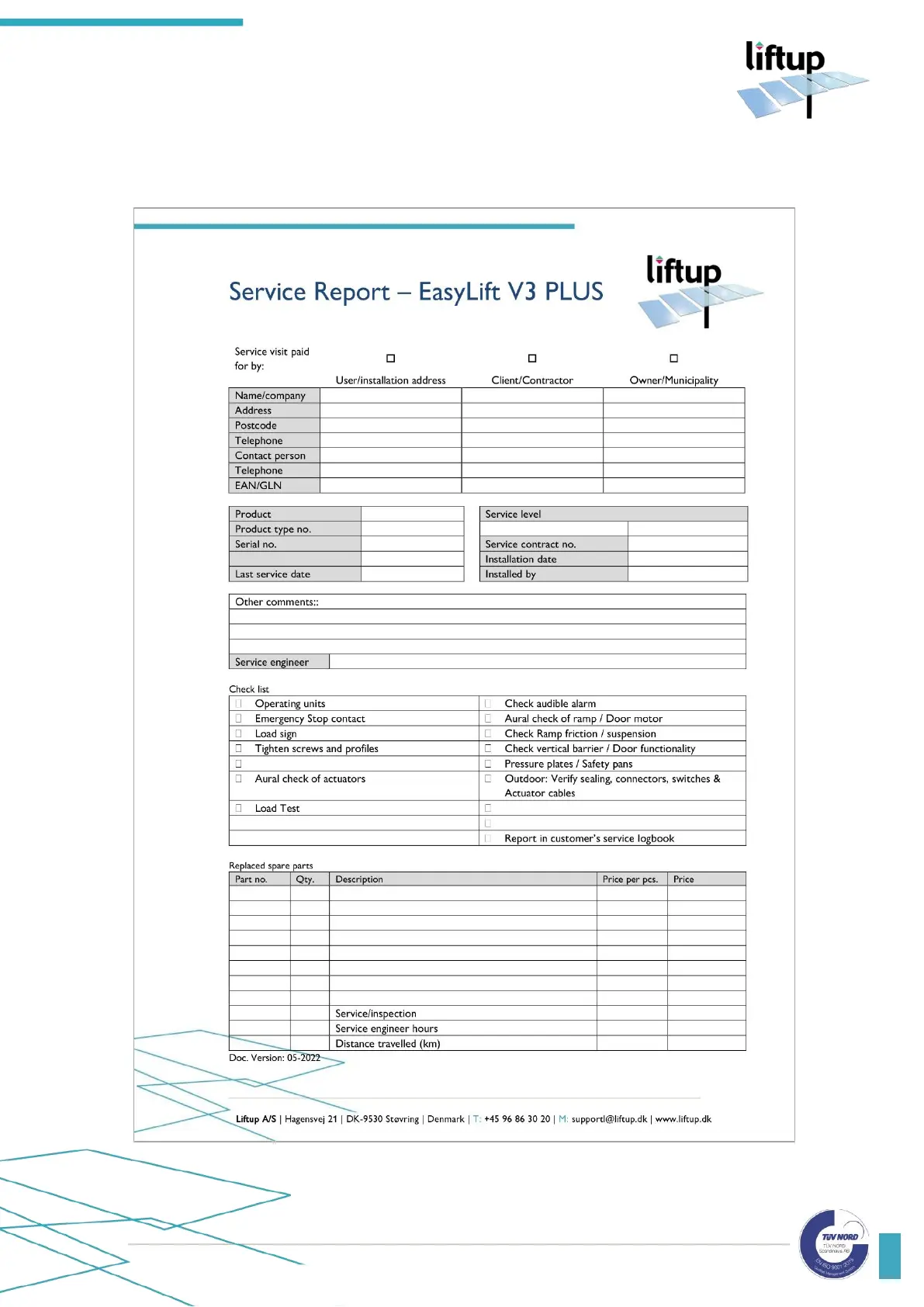 liftup EasyLift V3 PLUS - Service Report for Use in Service Inspections