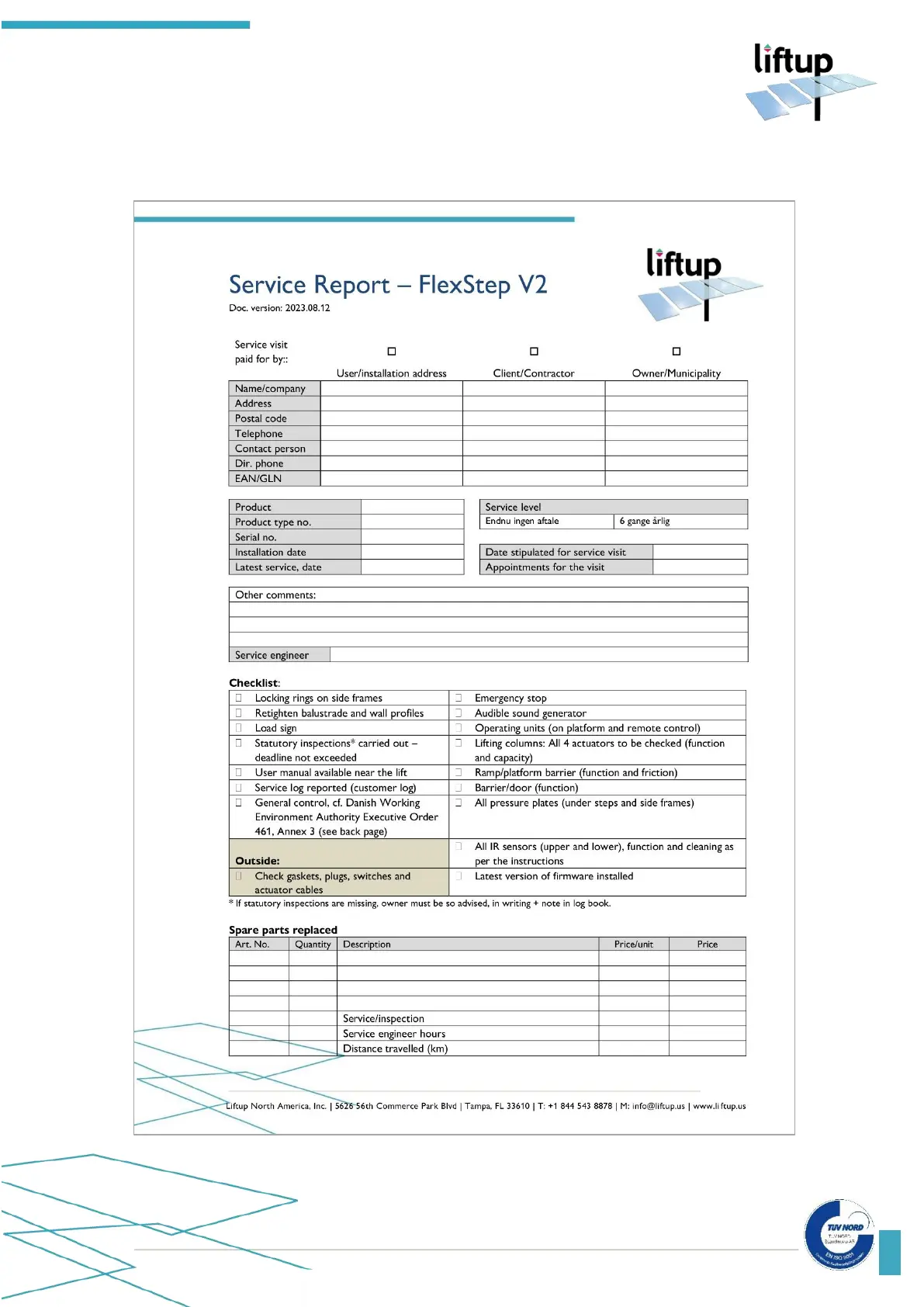 Liftup North America, Inc. | 5626 56th Commerce Park Blvd | Tampa, FL 33610 | T: +1 844 543 8878 | M: info@liftup.us | www.liftup.us