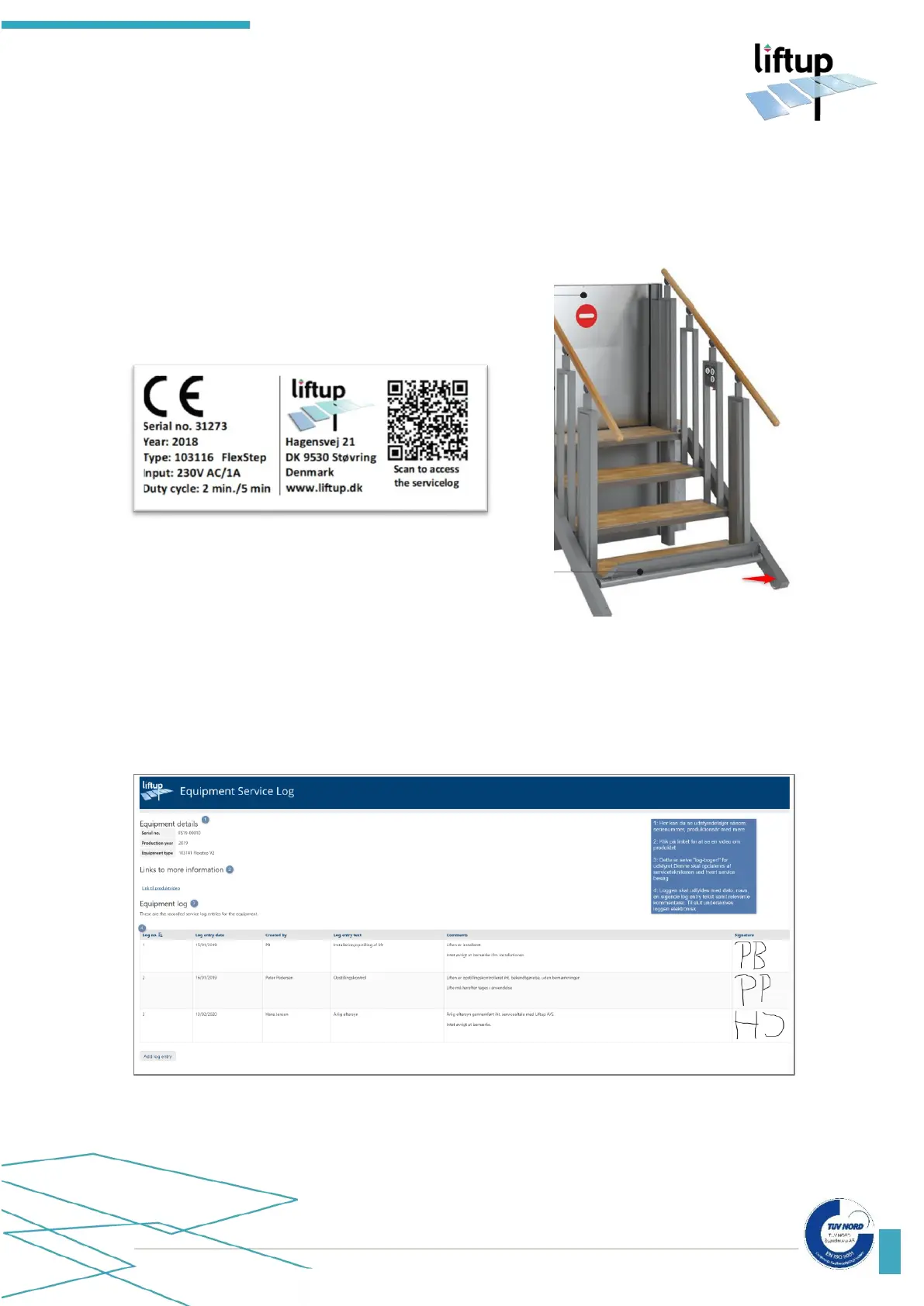 In section 3, a CE mark has been inserted with this specific lift’s serial number and QR code