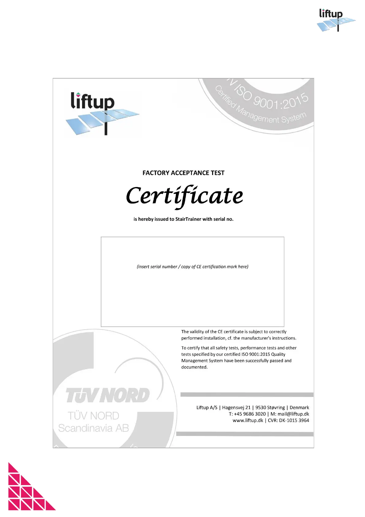 liftup STAIRTRAINER - 3 Factory Acceptance Test (FAT)