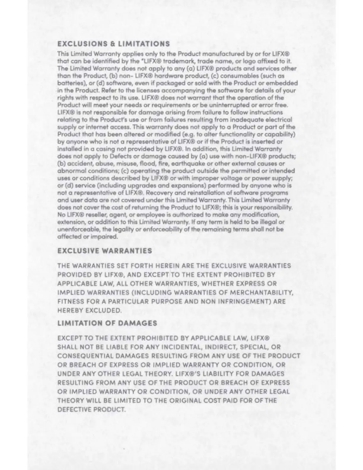 OTHER LEGAL THEORY. LIFX®'S LIABILITY FOR DAMAGES