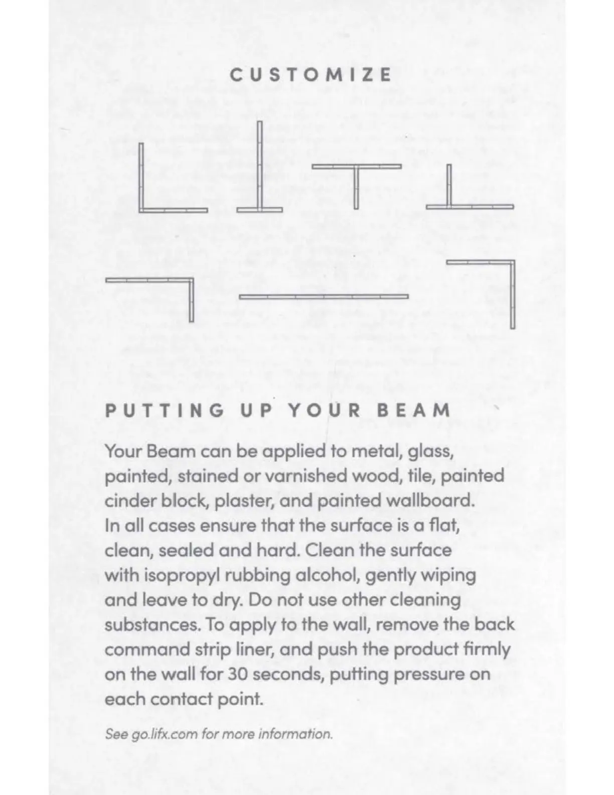 LIFX BEAM - Arrangement Styles; Wall Mounting Guide; Surface Requirements & Cleaning; Securing the Beam