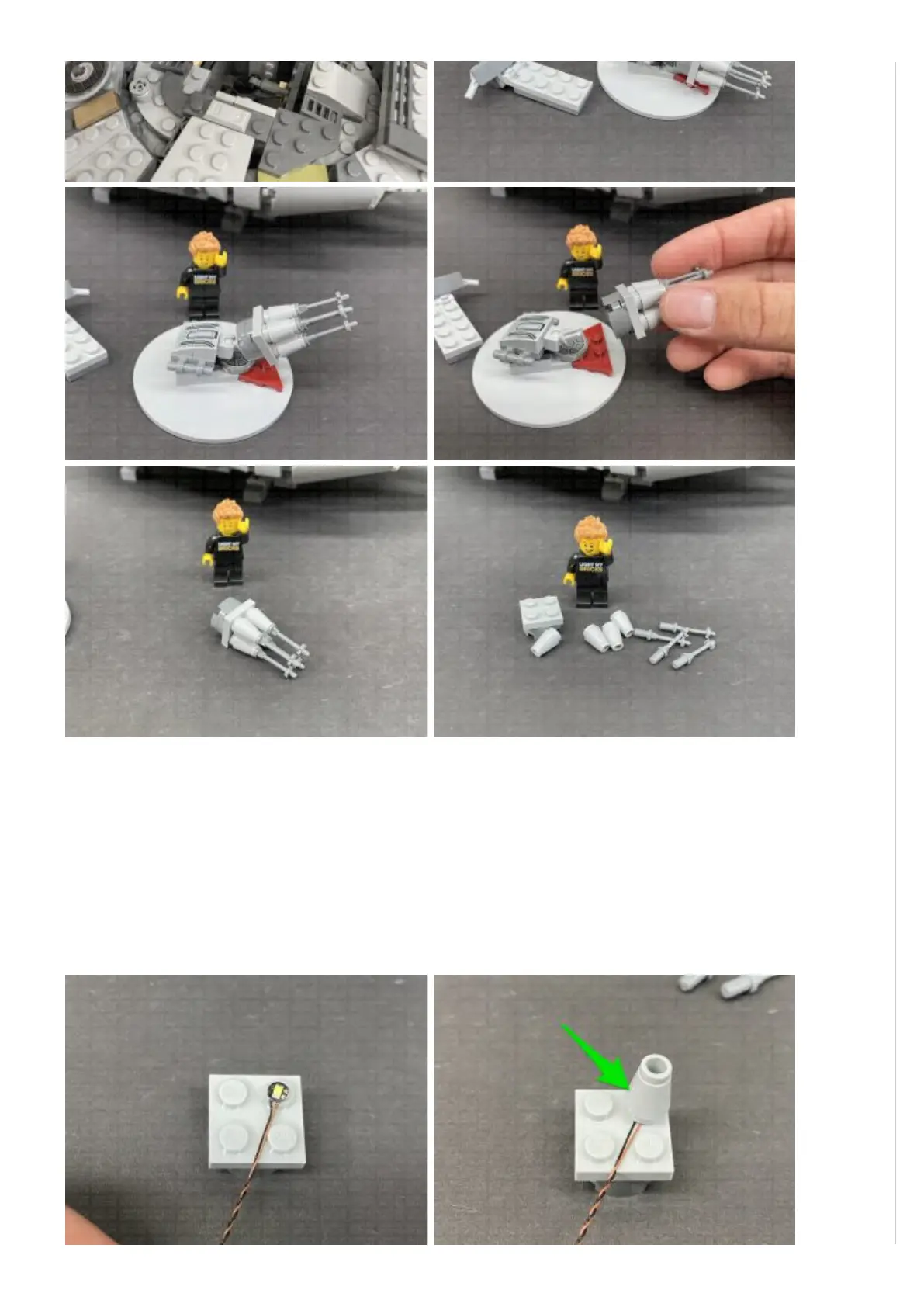 21.) Install 4x Cool White 30cm Bit Lights to the 2×2 plate ensuring all the