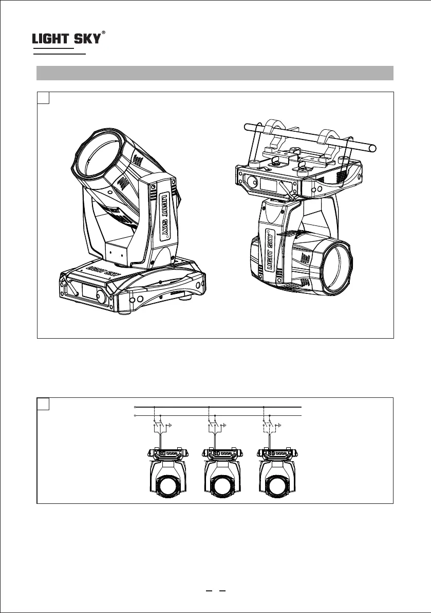 The projector can be installed on the floor resting on special rubber feet, on a truss or on the ceiling or wall.