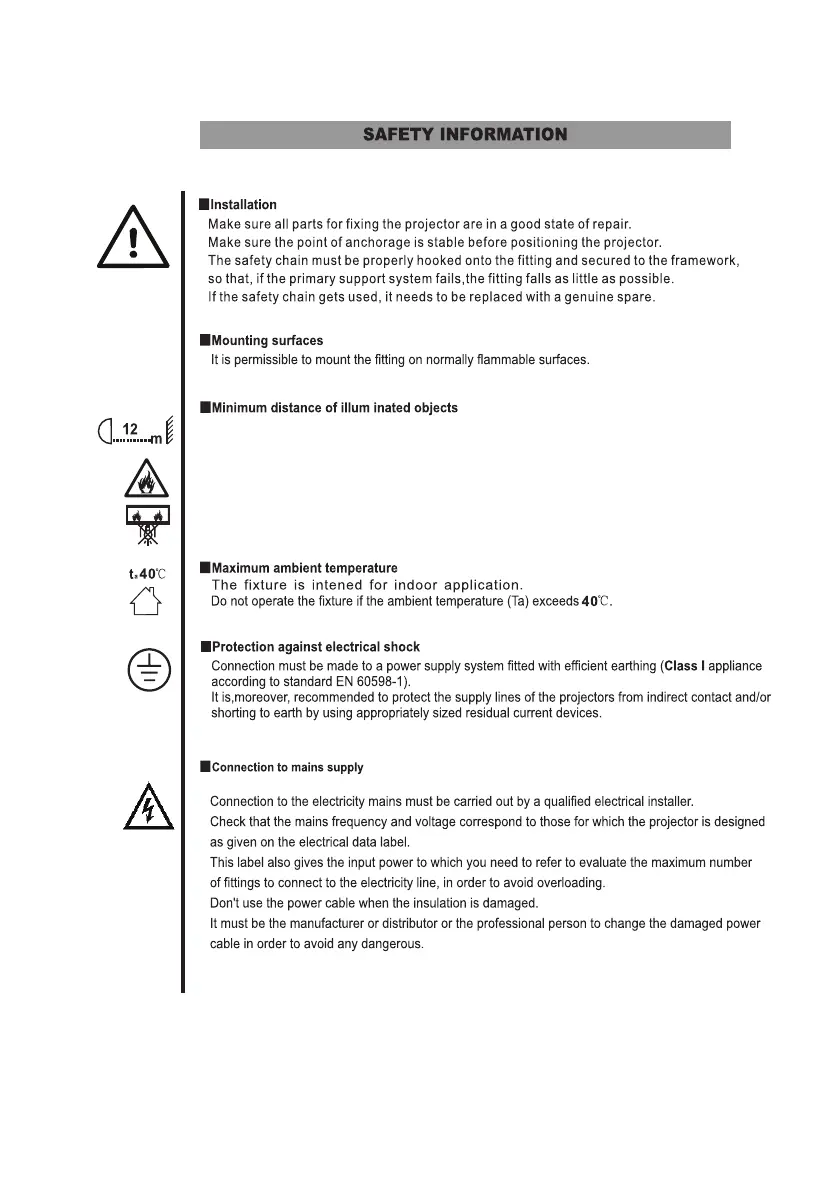 When the luminaire projects an object, the luminaires' light outlet must be at least 12 meters