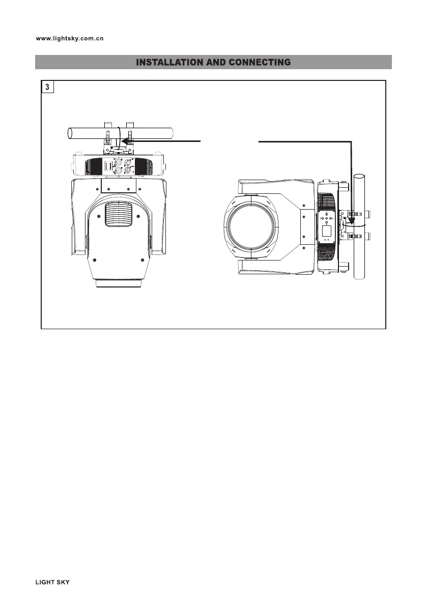 This must be securely fixed to the support structure of the projector and then connected to the fixing point at
