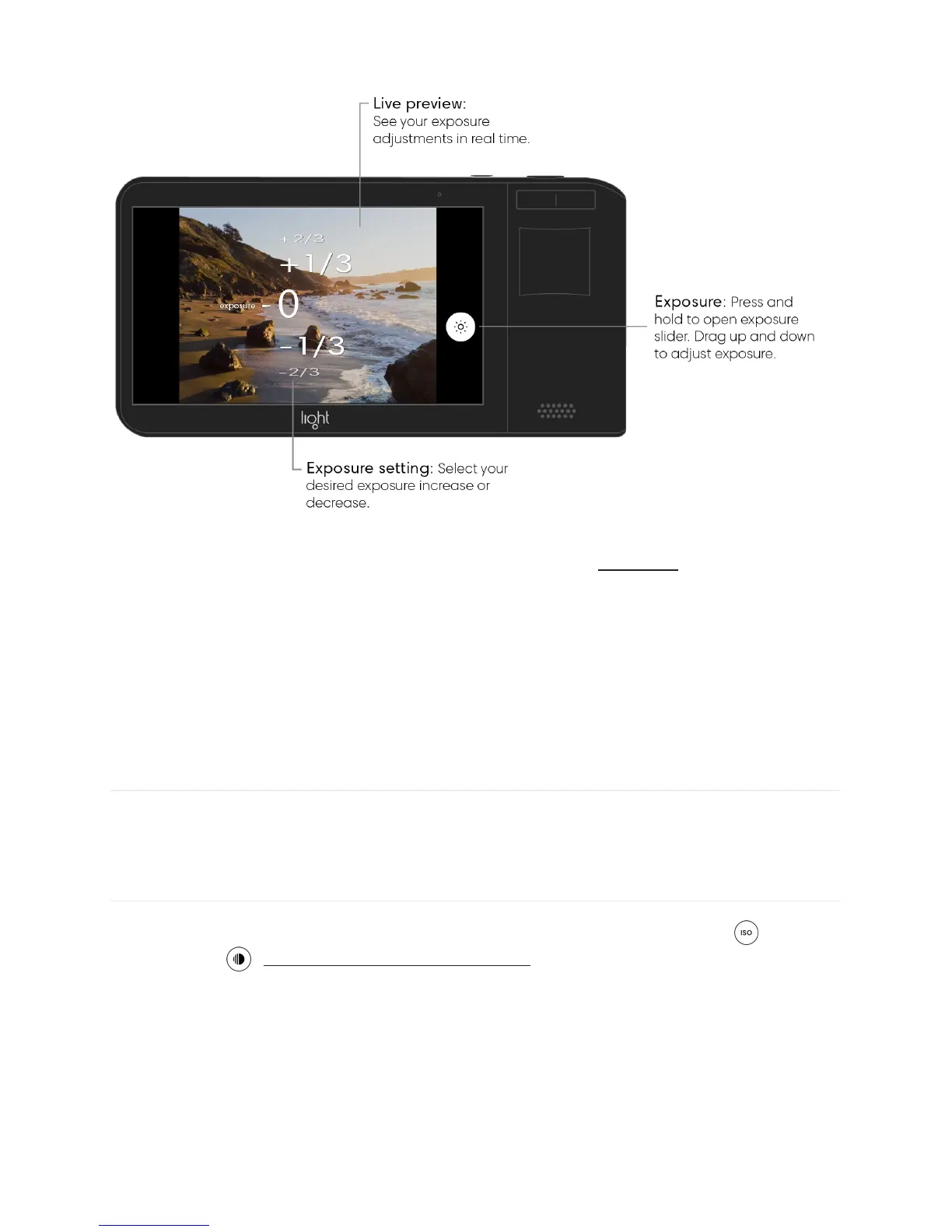 Manual mode allows you to adjust exposure through two capture controls: ISO and