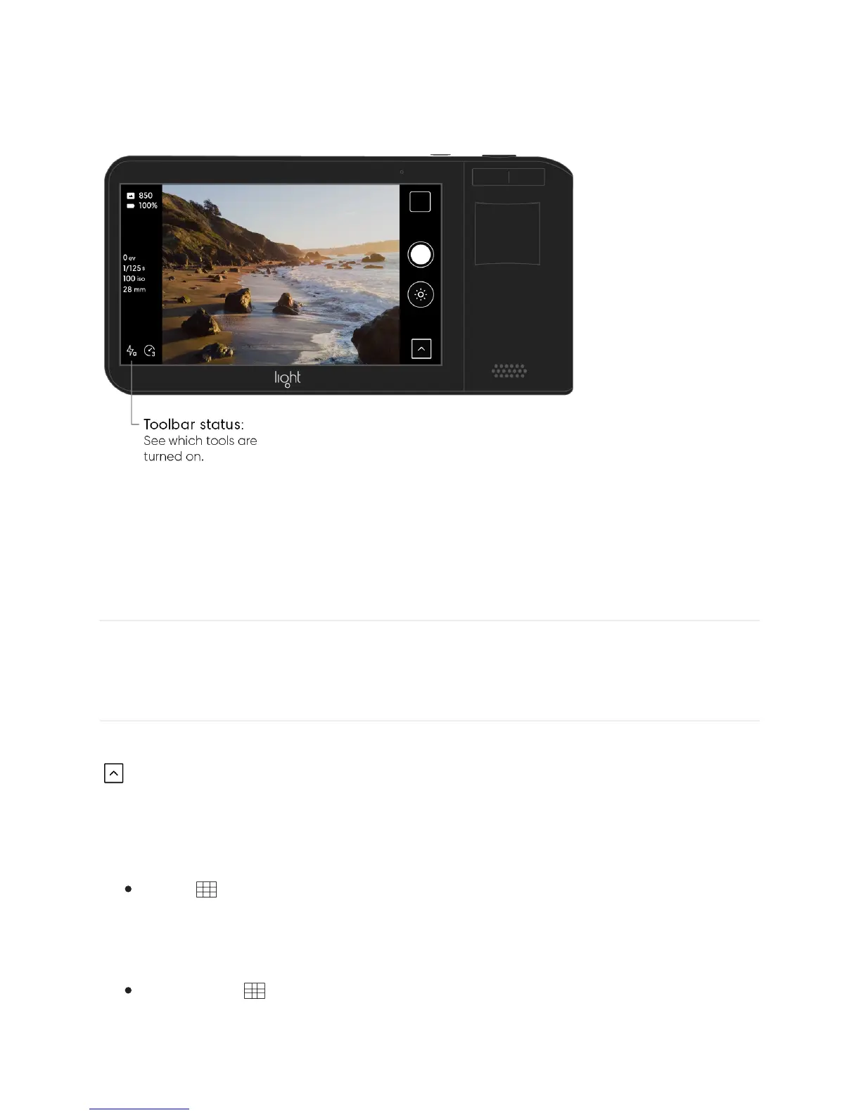 Turn on the Grid. To display grid lines over your Light L16’s live preview, open the Toolbar