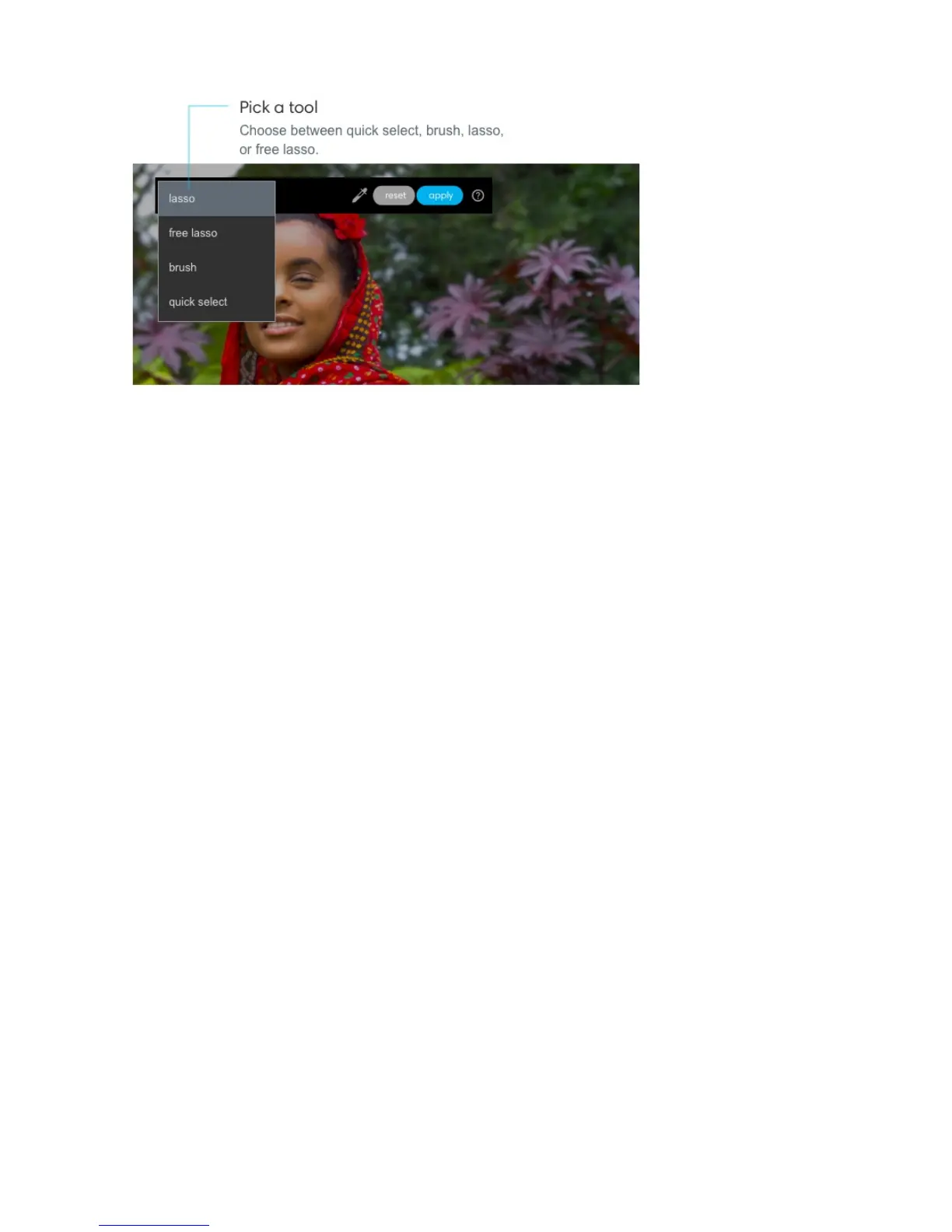 Make a selection. Select or paint the area you would like to change. For brush and quick