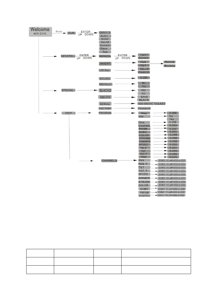 There is one mode to get DMX 512 signal for this fixture, it is 12CH. Please