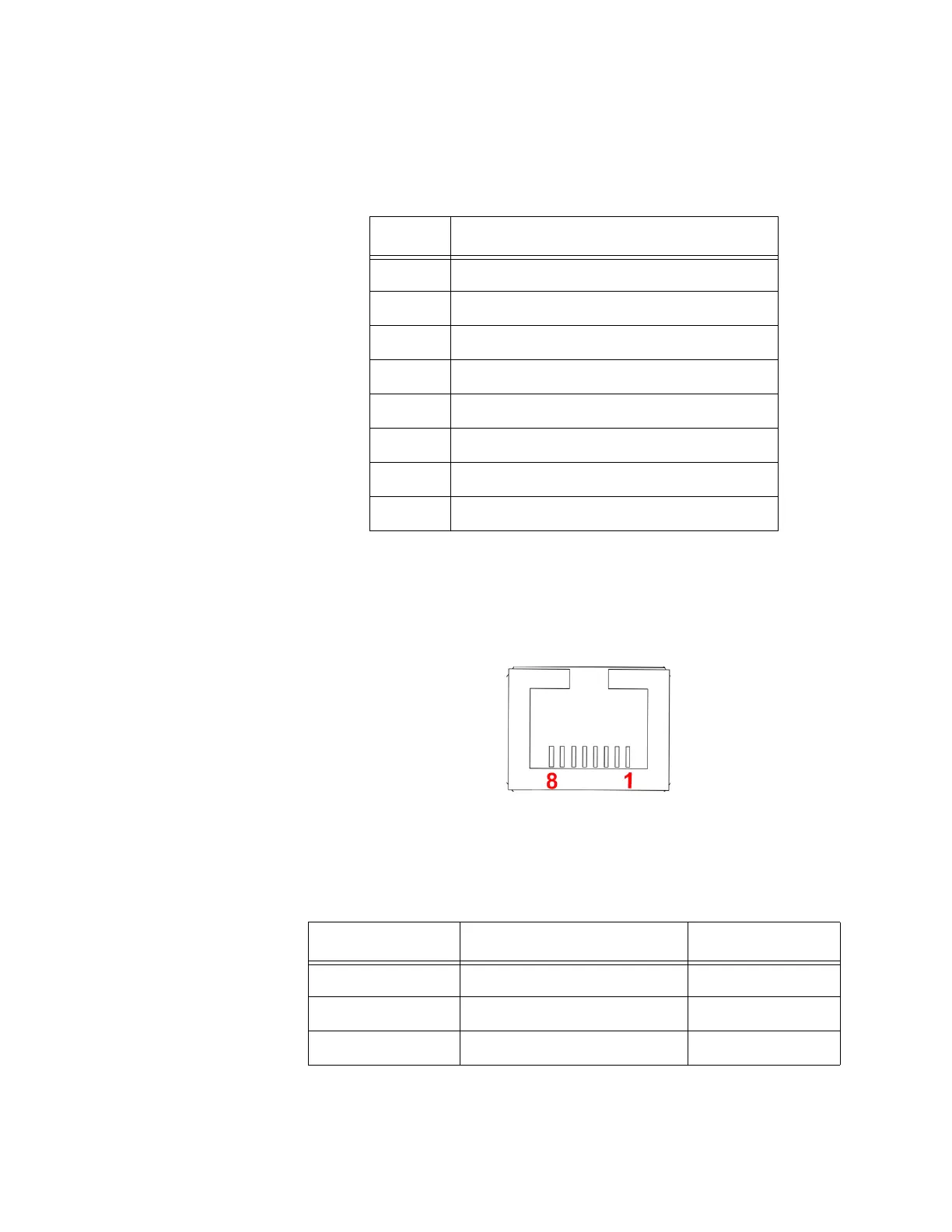 Table 2-7 shows the signals and pin numbers of the RJ45 and their