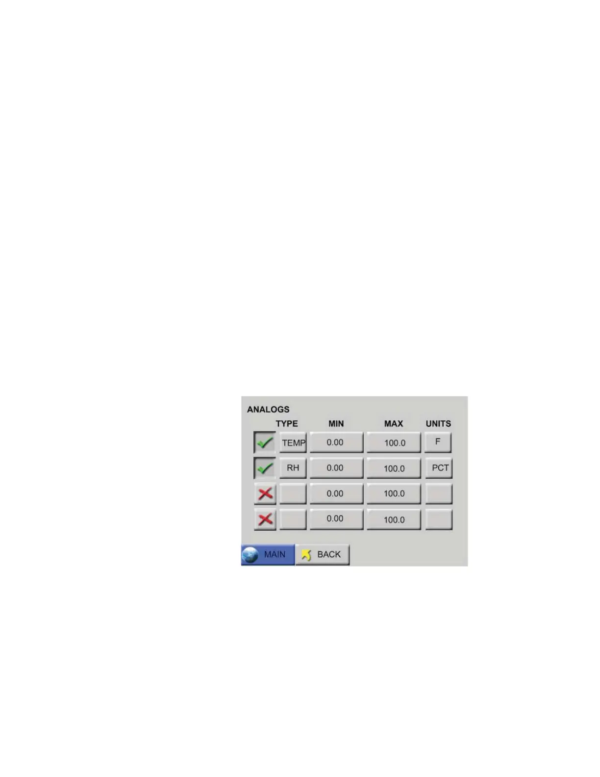 Figure 4-2 Analog Configuration Screen