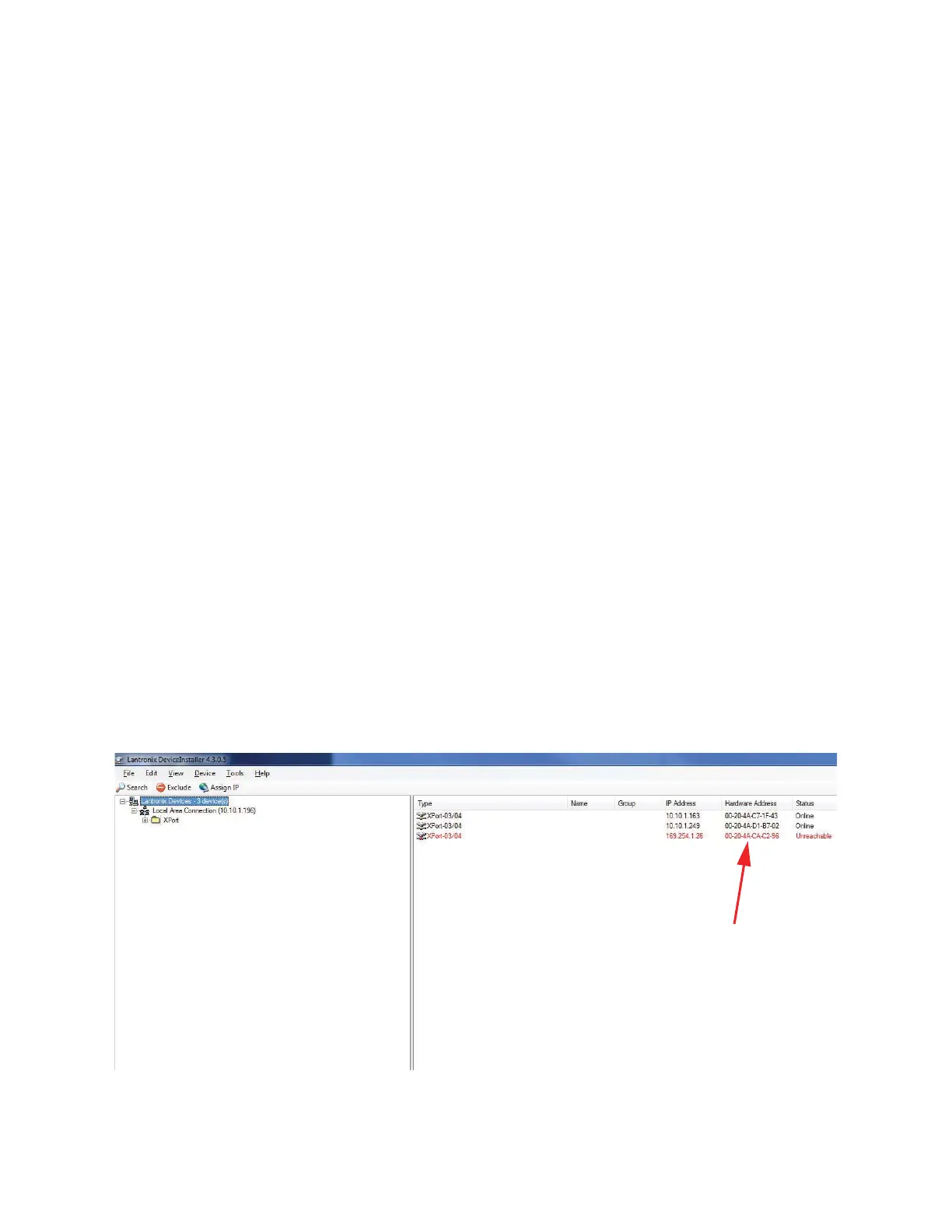 displayed in DeviceInstaller matches the address on the back of