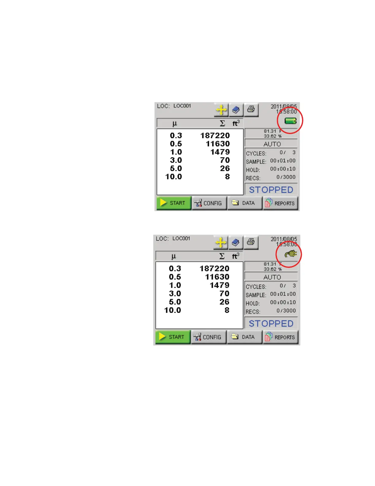 Figure 6-2 MAIN Screen - Battery Operated