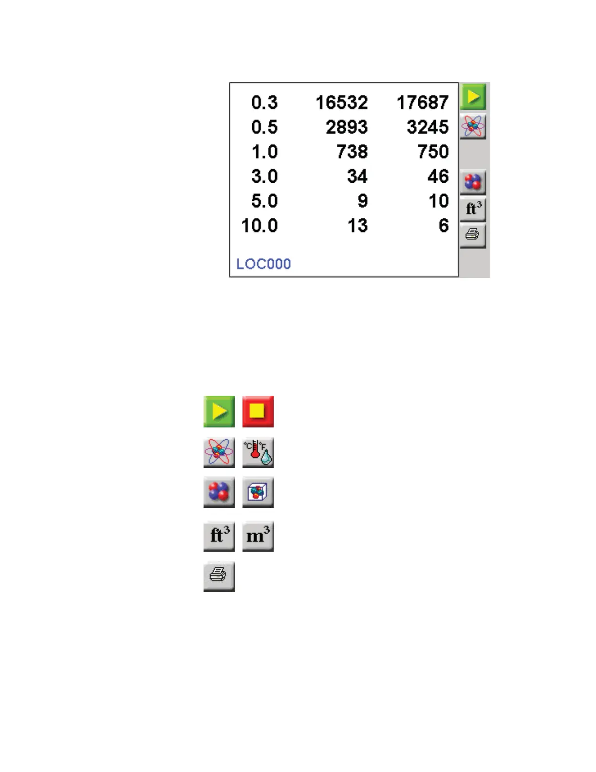 The buttons available when touching the data area of the screen after