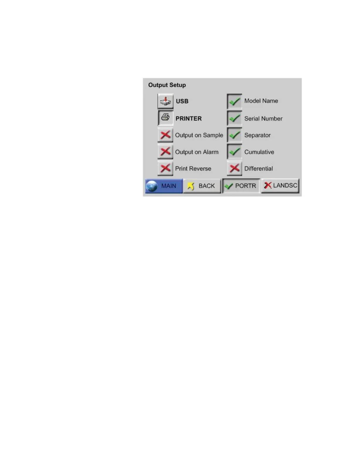 Figure 6-53 Output Setup Screen, Printer Settings