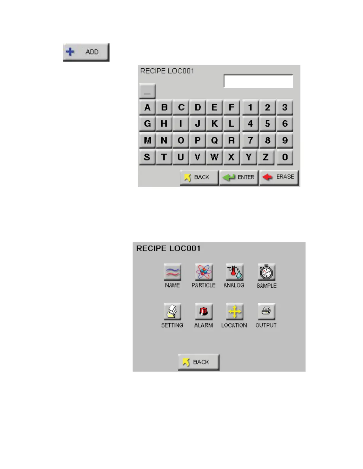 Selecting the ADD button displays the RECIPE text screen. See Figure