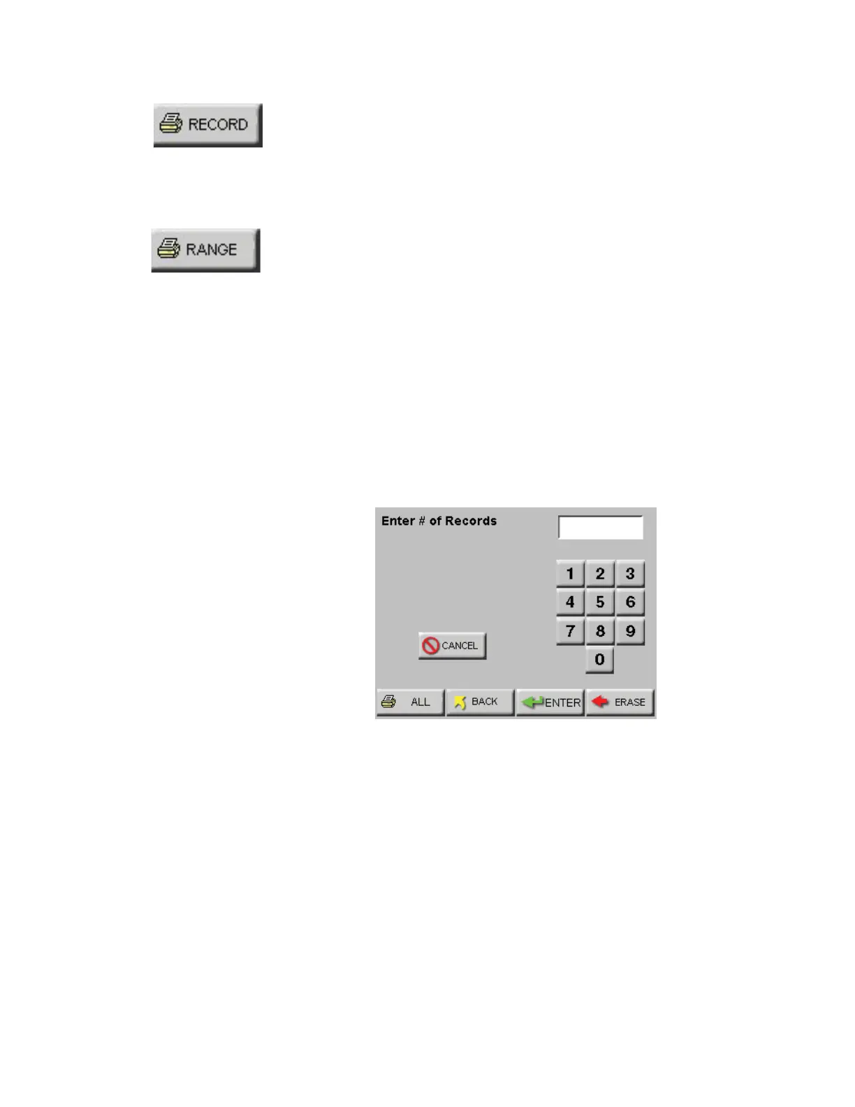 • Enter the number of records to print and press the ENTER button.