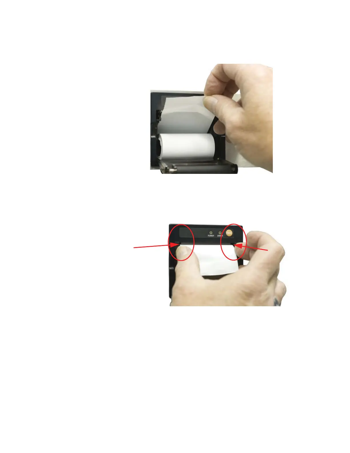 5. Press the paper feed button to feed about an inch of paper to ensure
