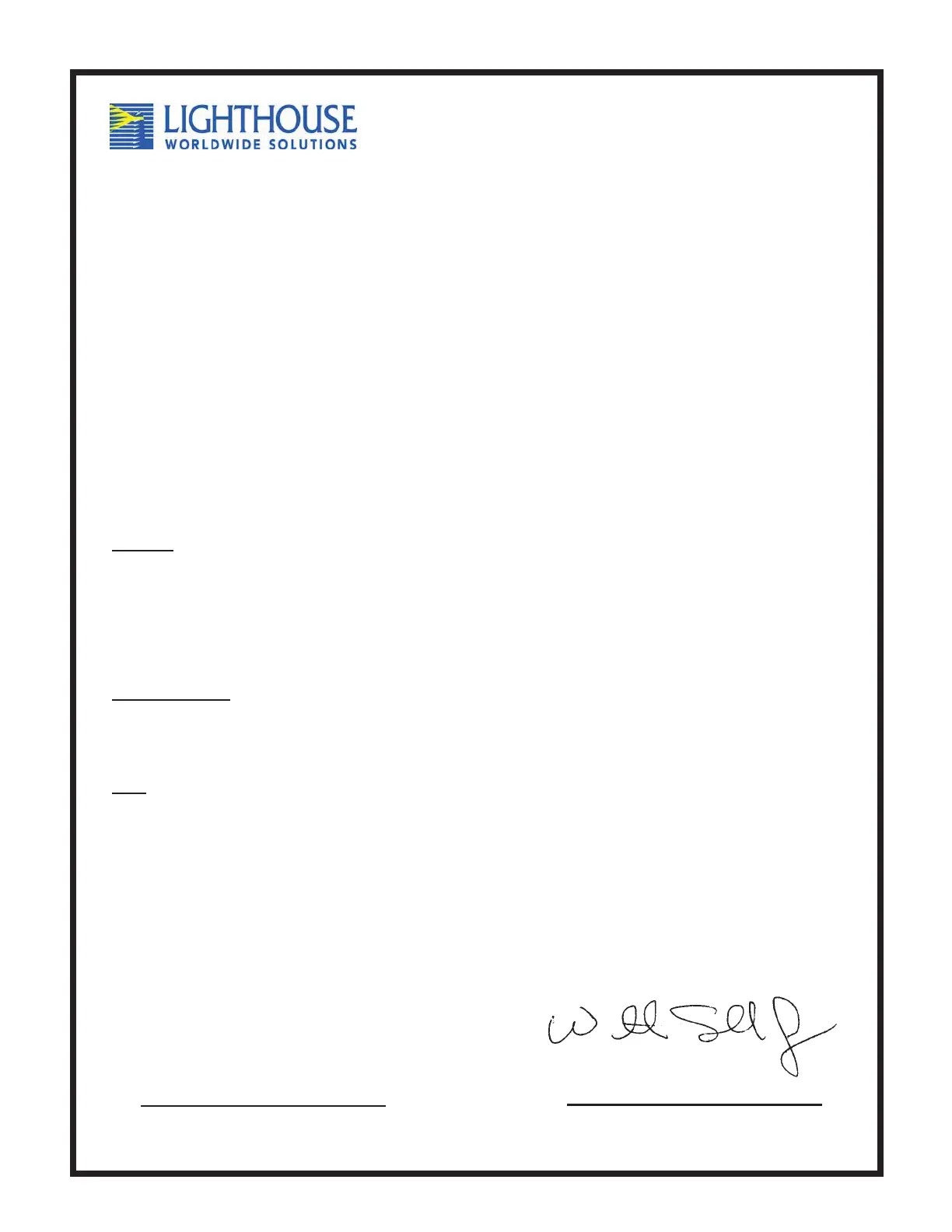 Manufacturer’s Name: Lighthouse Worldwide Solutions, Inc.