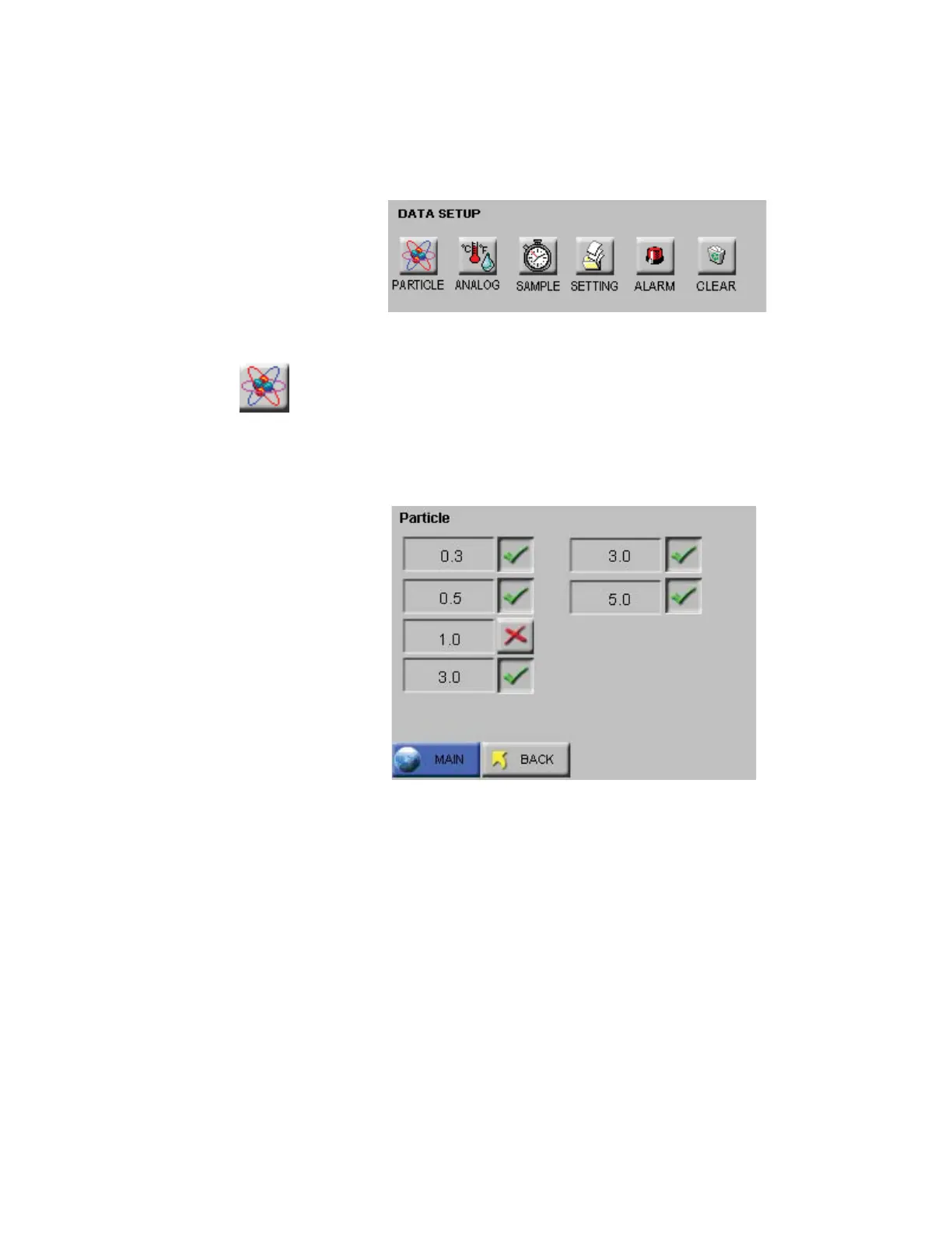 The instrument’s particle channels can be enabled or disabled on the