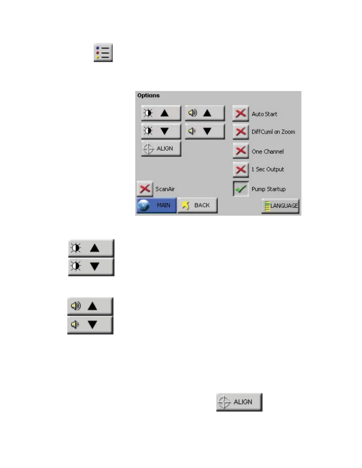 The ALIGN button allows the user to re-align the touch screen so the
