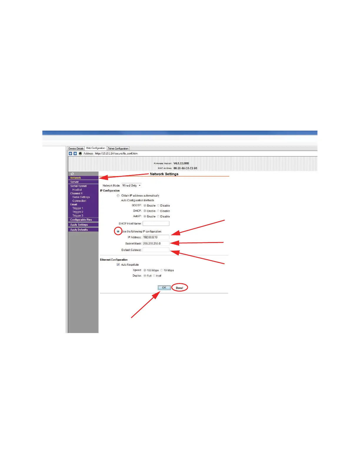 • Enter the IP Address: “XXX.XX.X.XX” and the Subnet Mask:
