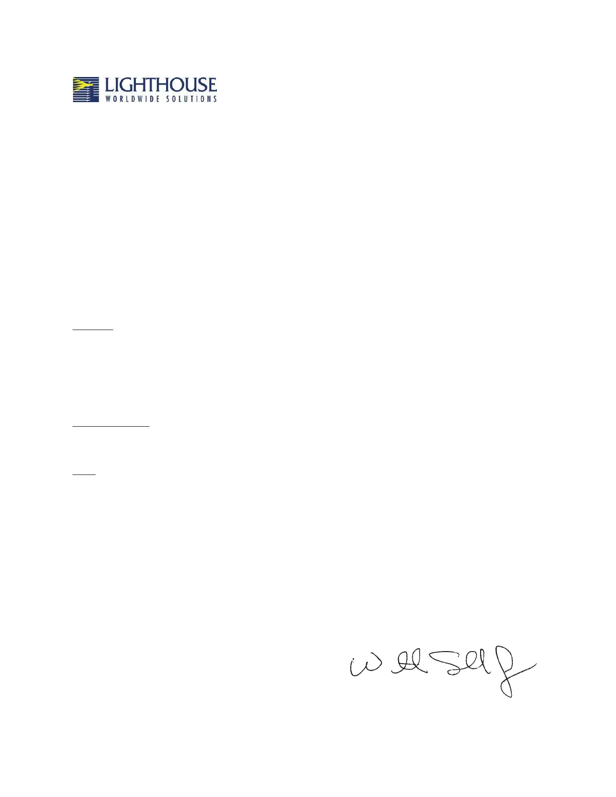 Manufacturer’s Name Lighthouse Worldwide Solutions, Inc.